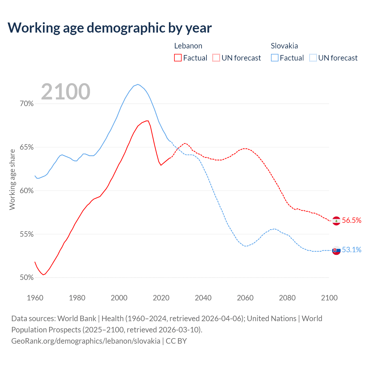 - Lebanon has 3.76M working age adults (aged 15-64) vs 3.52M in Slovakia.