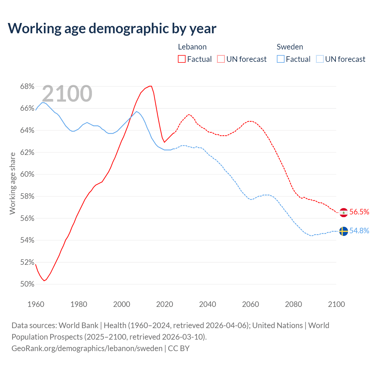 - Lebanon has 3.76M working age adults (aged 15-64) vs 6.65M in Sweden.