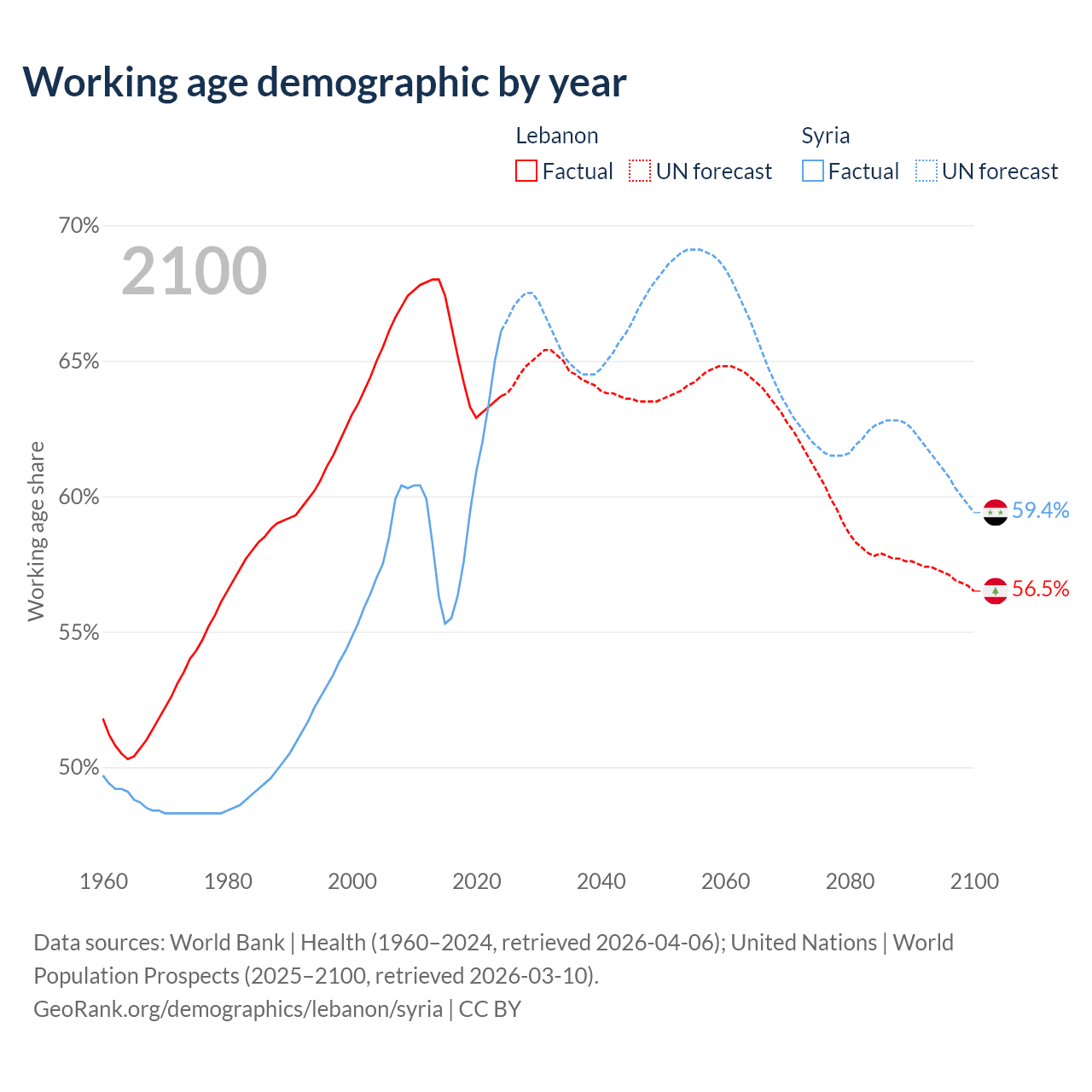 - Lebanon has 3.76M working age adults (aged 15-64) vs 17.7M in Syria.