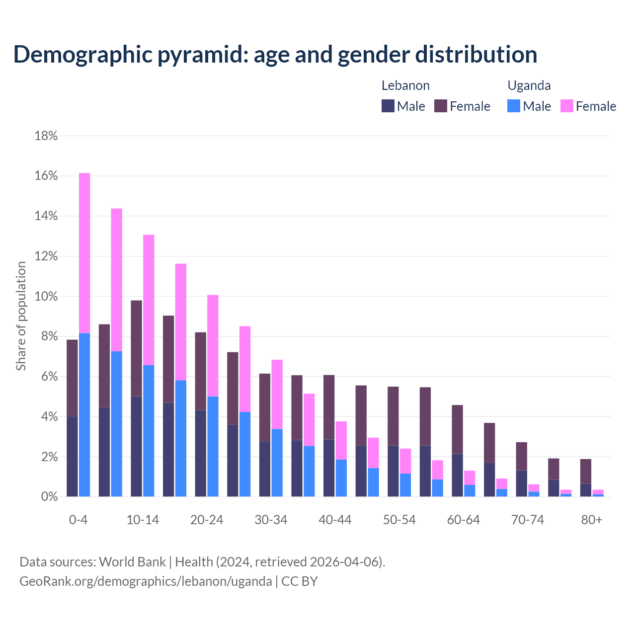 Demographics of Lebanon compared to Uganda: