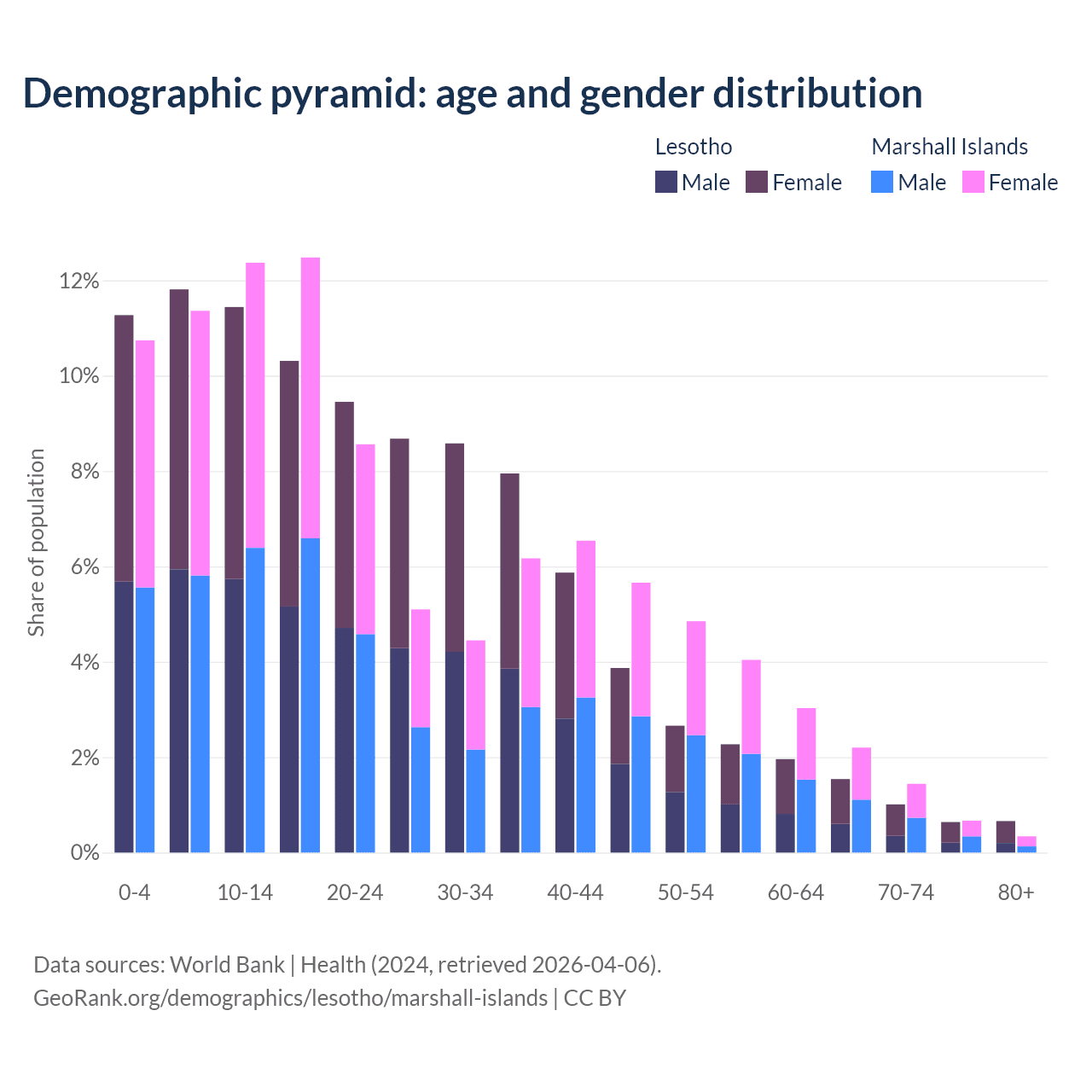 Demographics of Lesotho compared to the Marshall Islands: