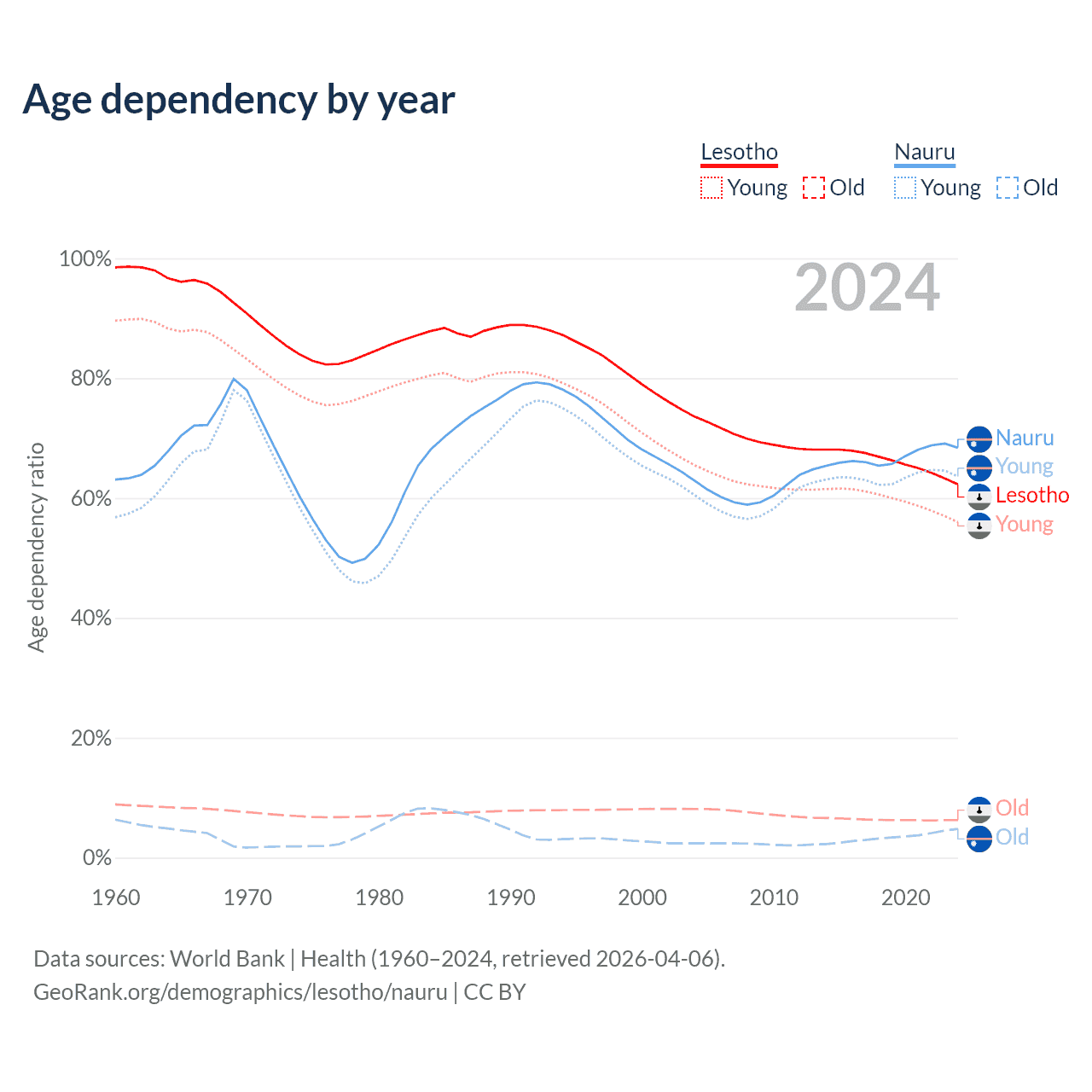 - The share of old-age demographic (65+) in Lesotho is 3.86% vs 2.85% in Nauru.