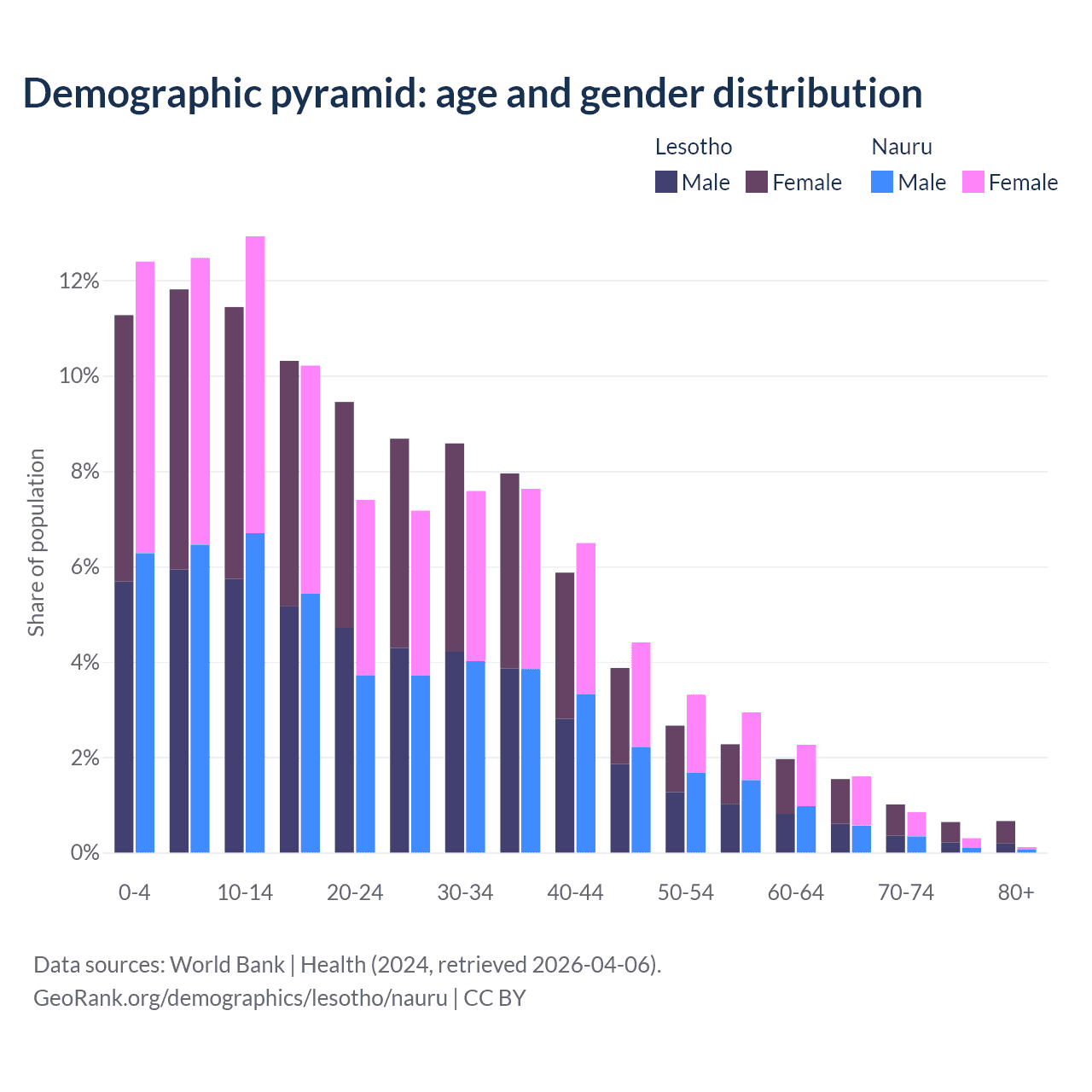 Demographics of Lesotho compared to Nauru: