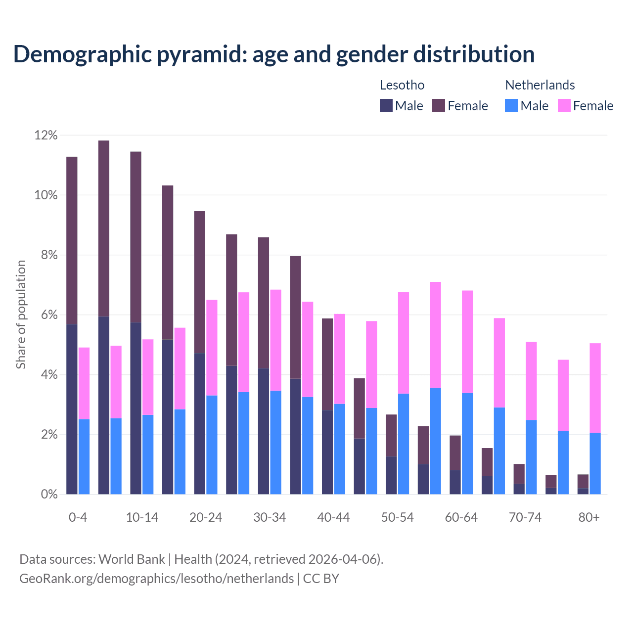 Demographics of Lesotho compared to the Netherlands: