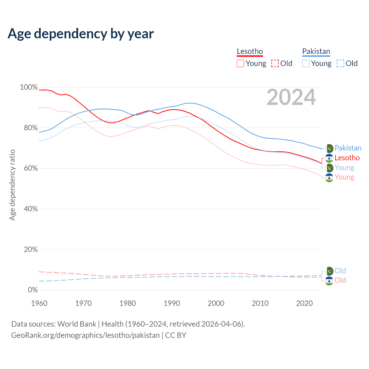 - The share of old-age demographic (65+) in Lesotho is 3.86% vs 4.28% in Pakistan.