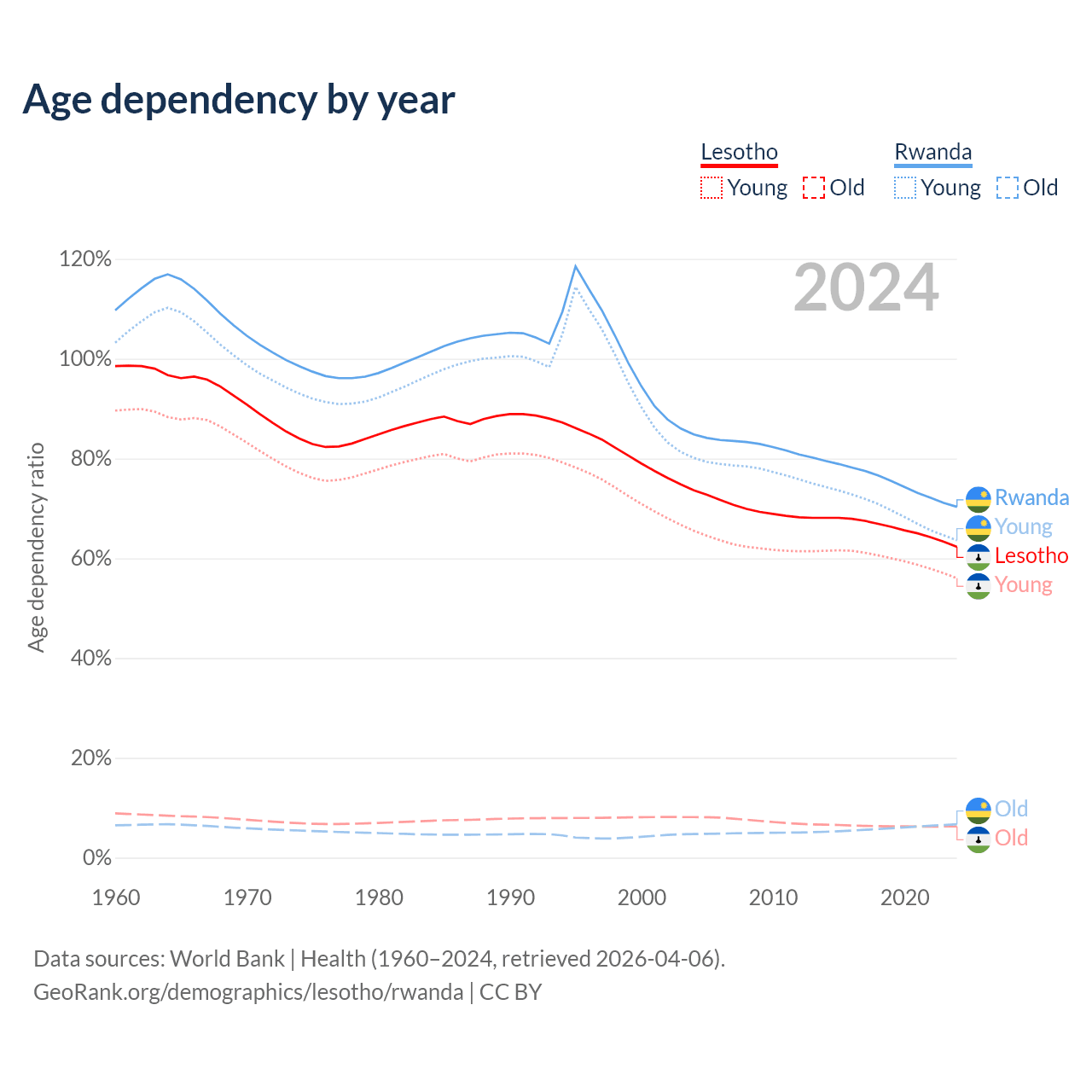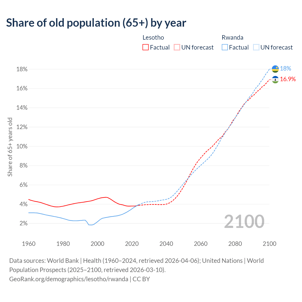 - The share of old-age demographic (65+) in Lesotho is 3.86% vs 3.93% in Rwanda.