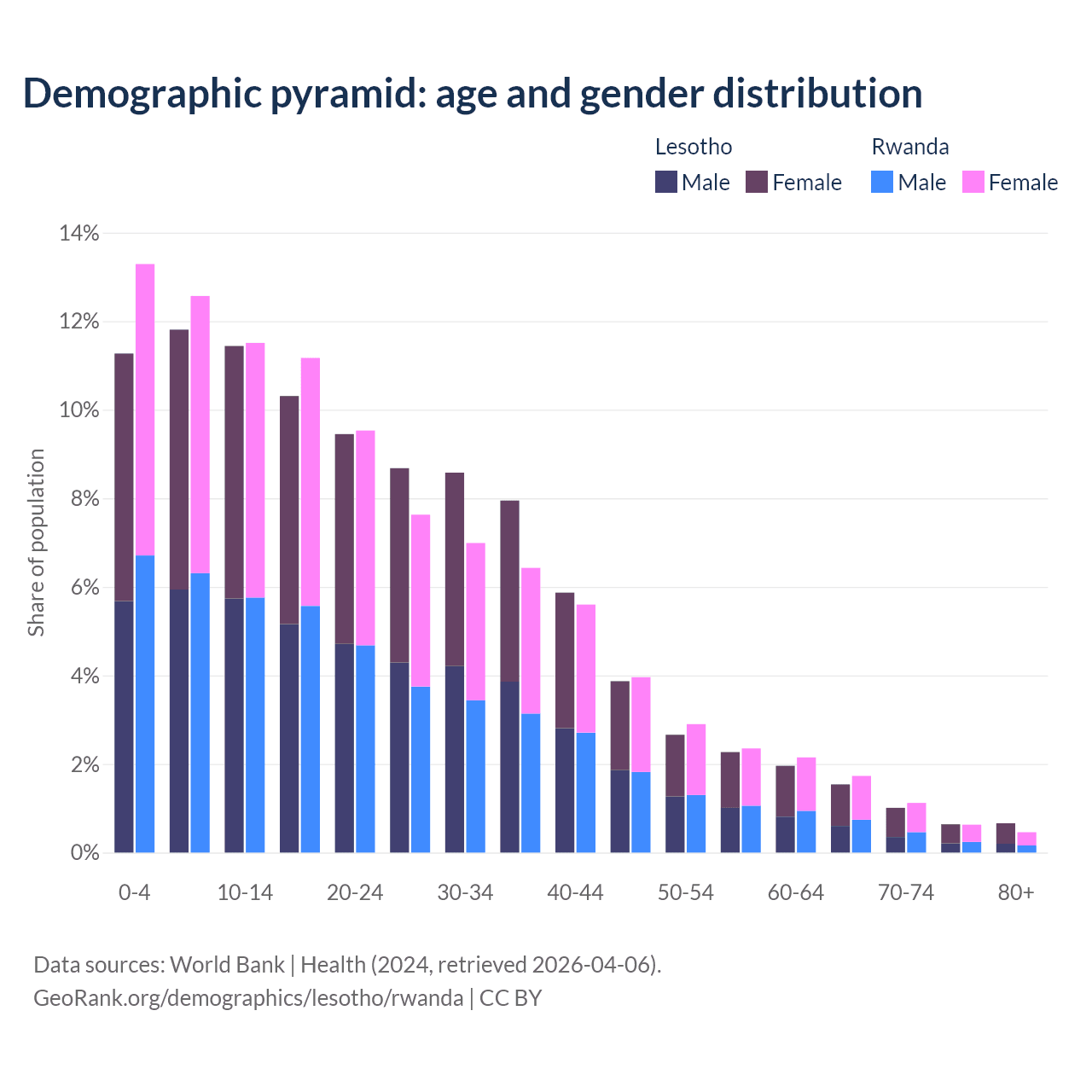 Demographics of Lesotho compared to Rwanda: