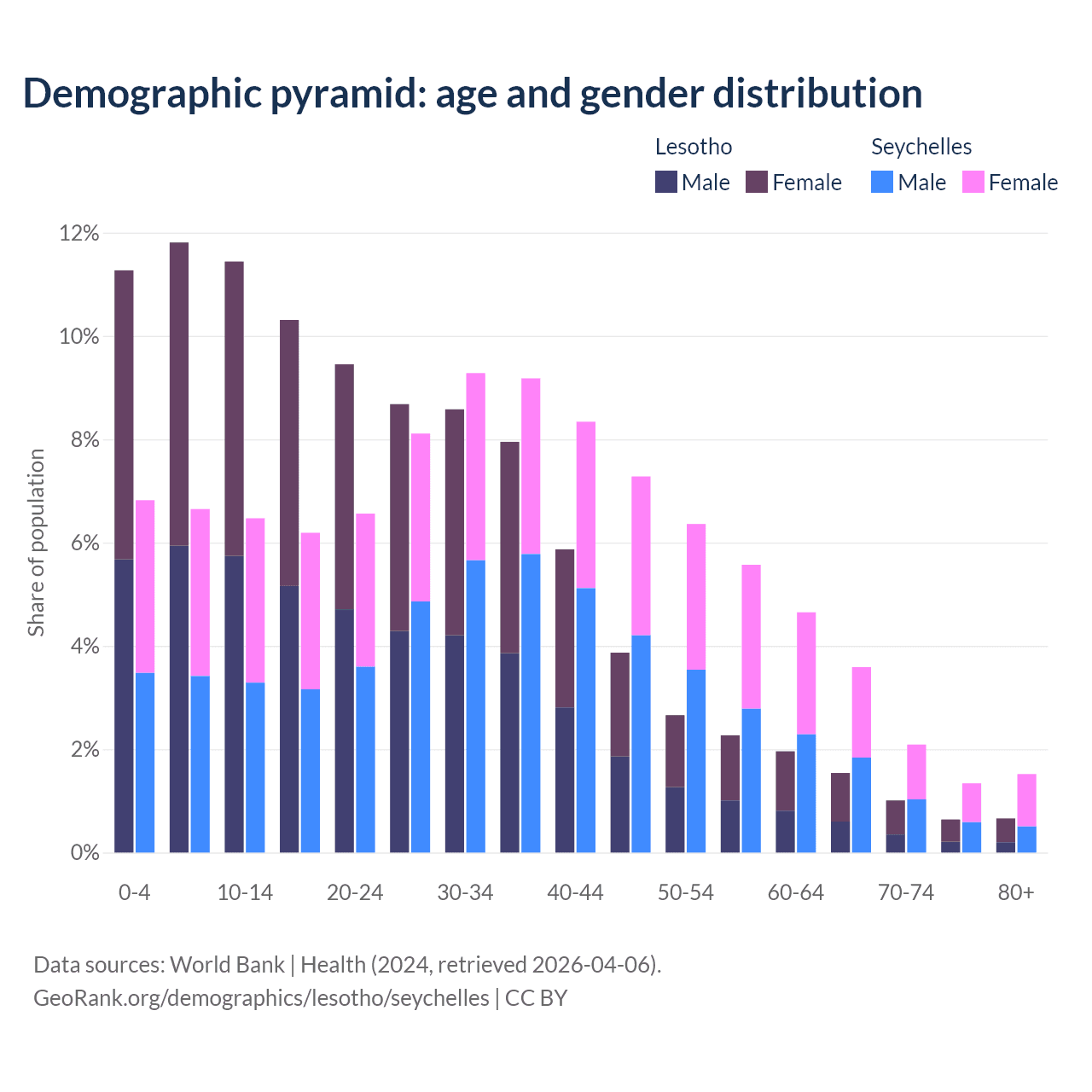 Demographics of Lesotho compared to the Seychelles: