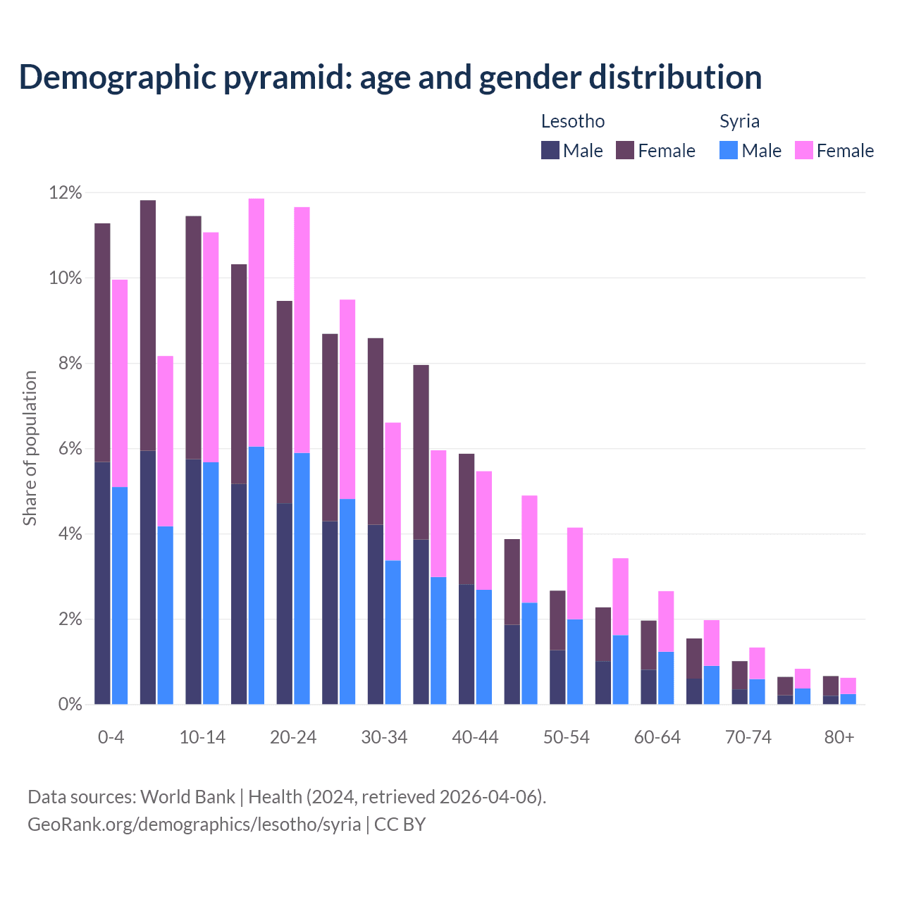 Demographics of Lesotho compared to Syria: