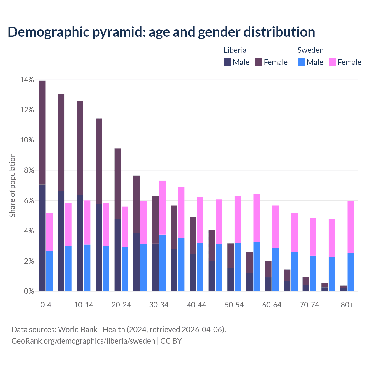 Demographics of Liberia compared to Sweden: