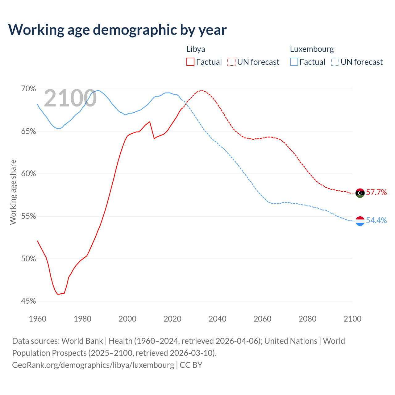 - Libya has 5.11M working age adults (aged 15-64) vs 477K in Luxembourg.