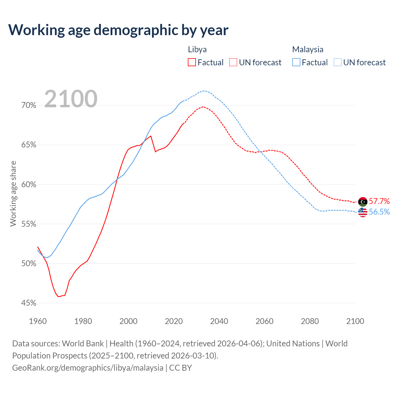 - Libya has 5.11M working age adults (aged 15-64) vs 25.7M in Malaysia.