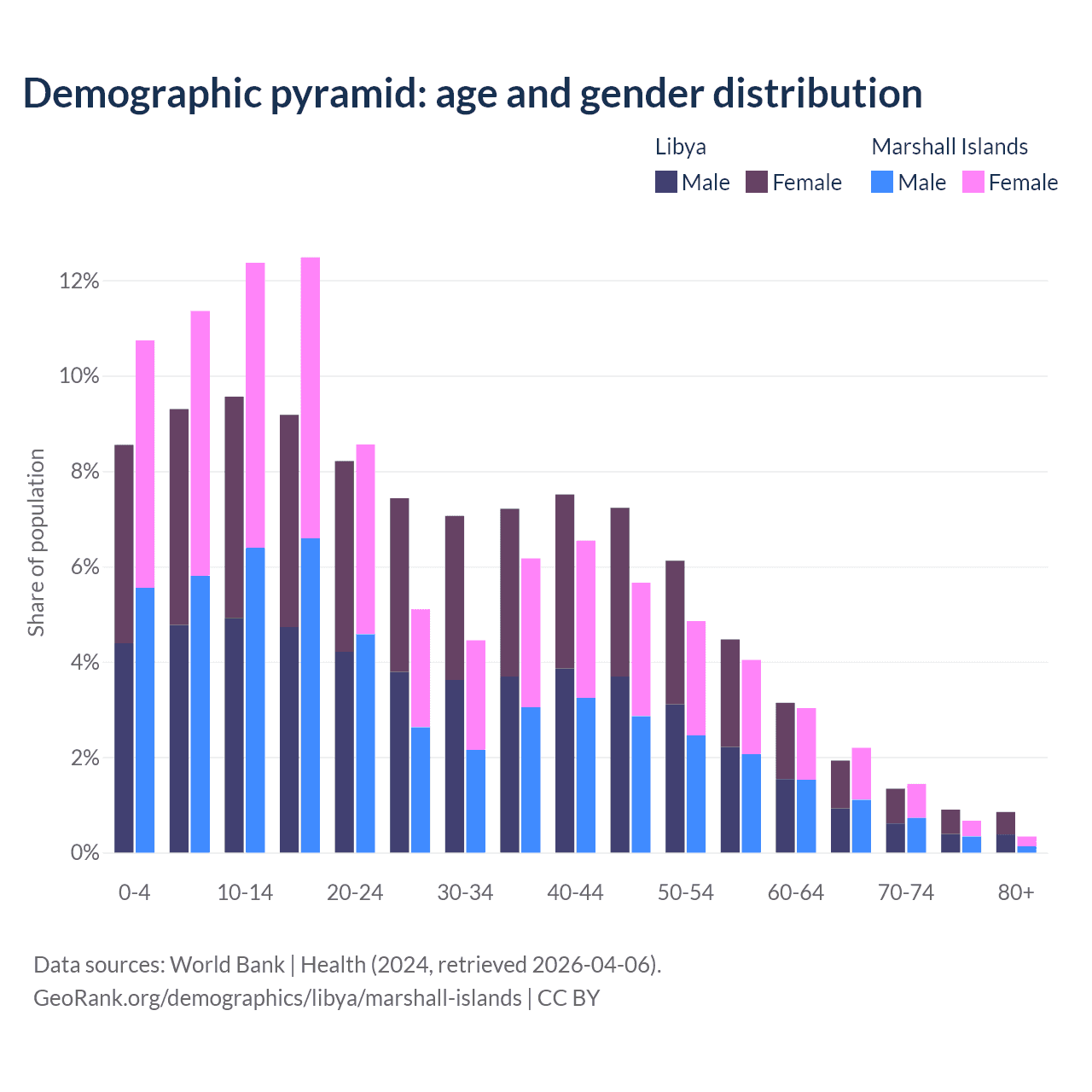 Demographics of Libya compared to the Marshall Islands: