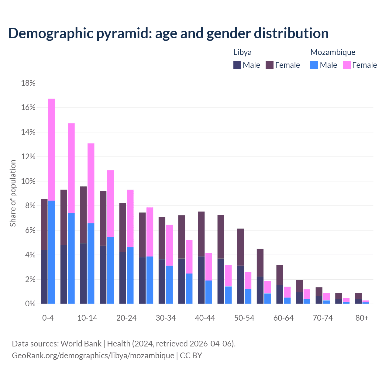 Demographics of Libya compared to Mozambique: