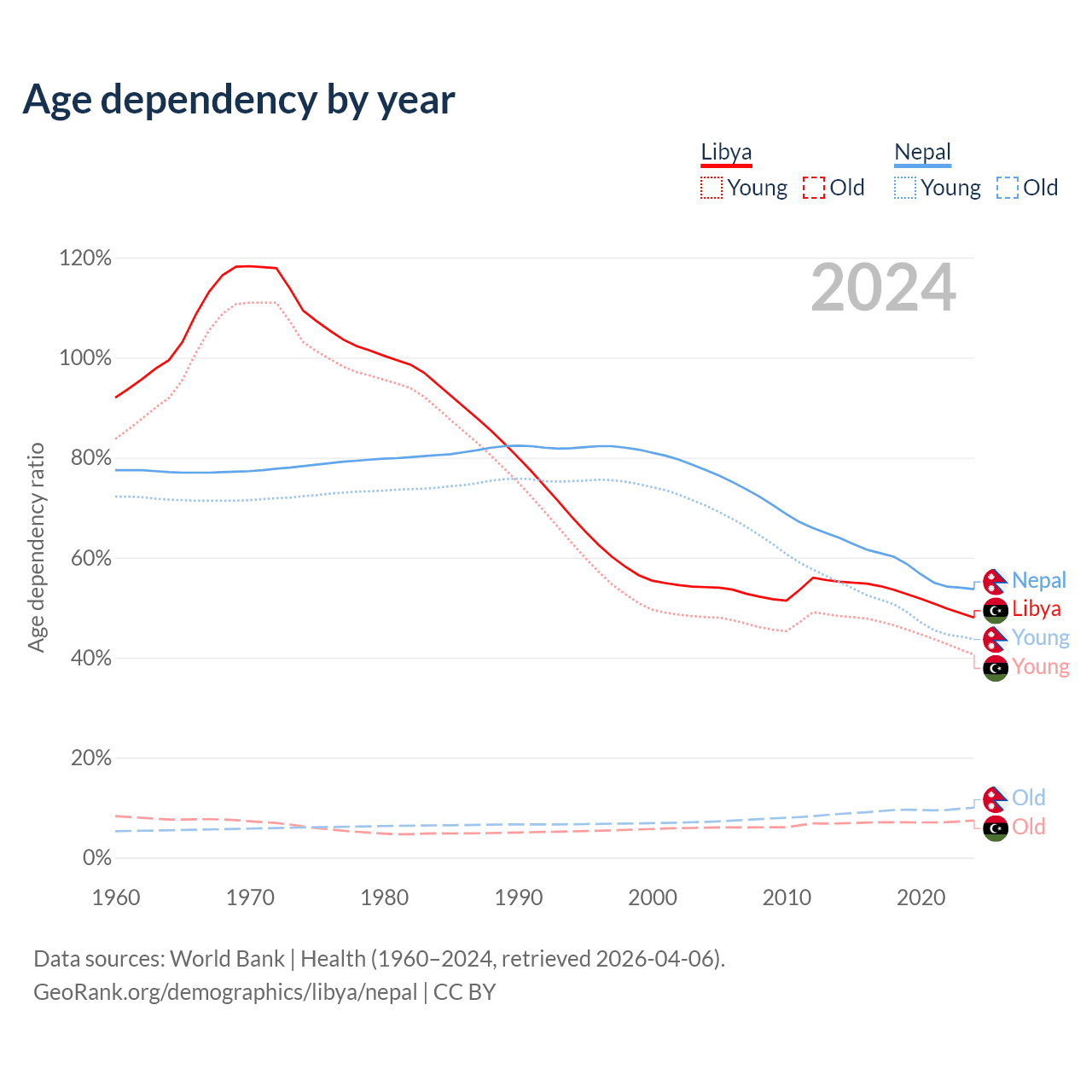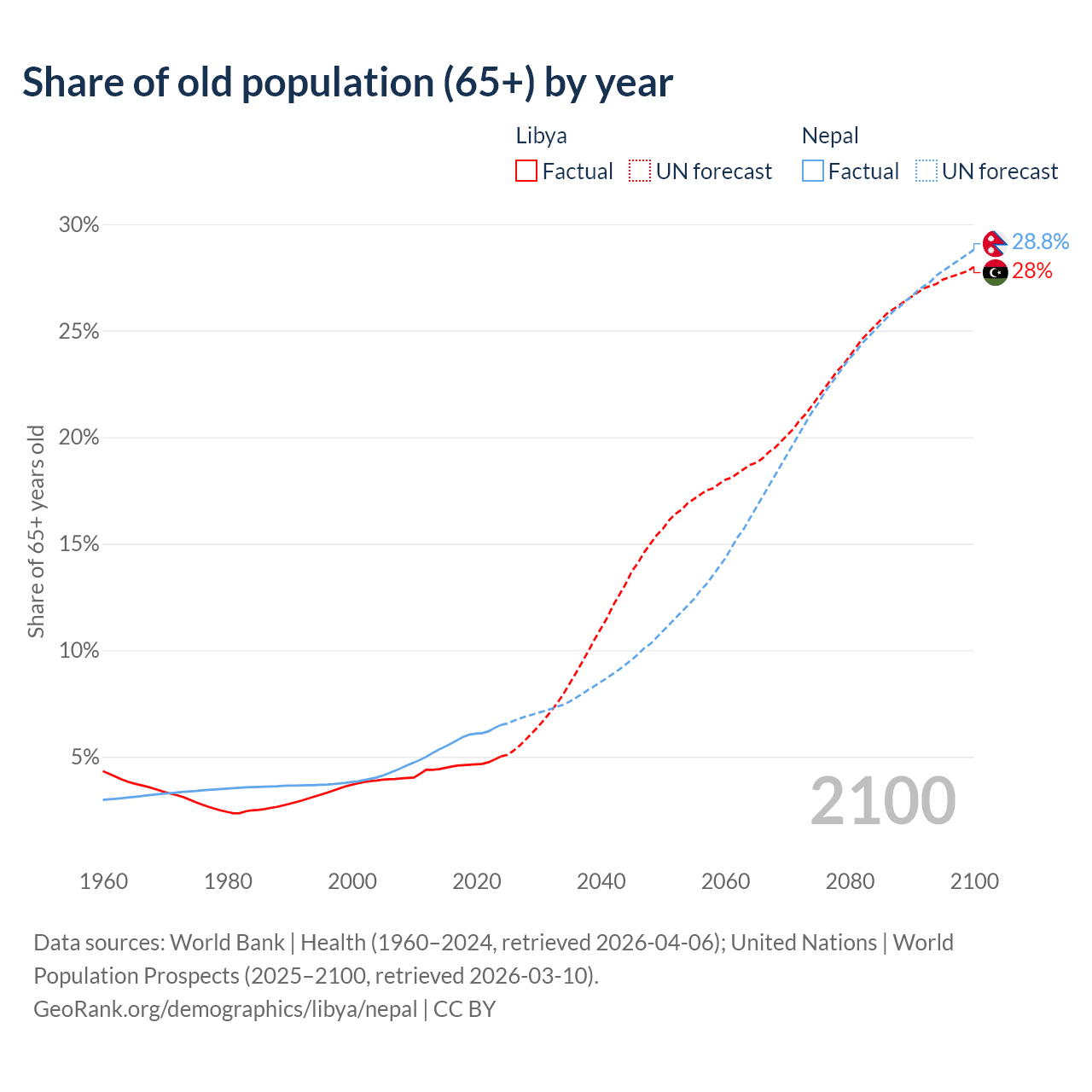 - The share of old-age demographic (65+) in Libya is 5.02% vs 6.5% in Nepal.