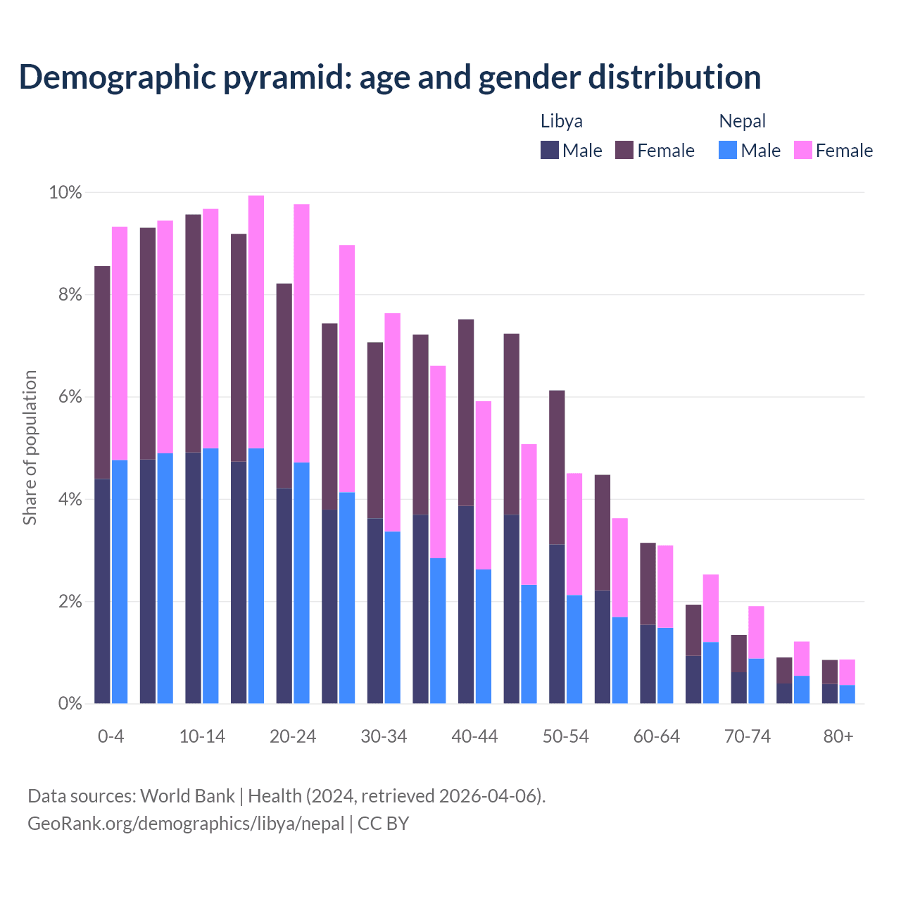 Demographics of Libya compared to Nepal: