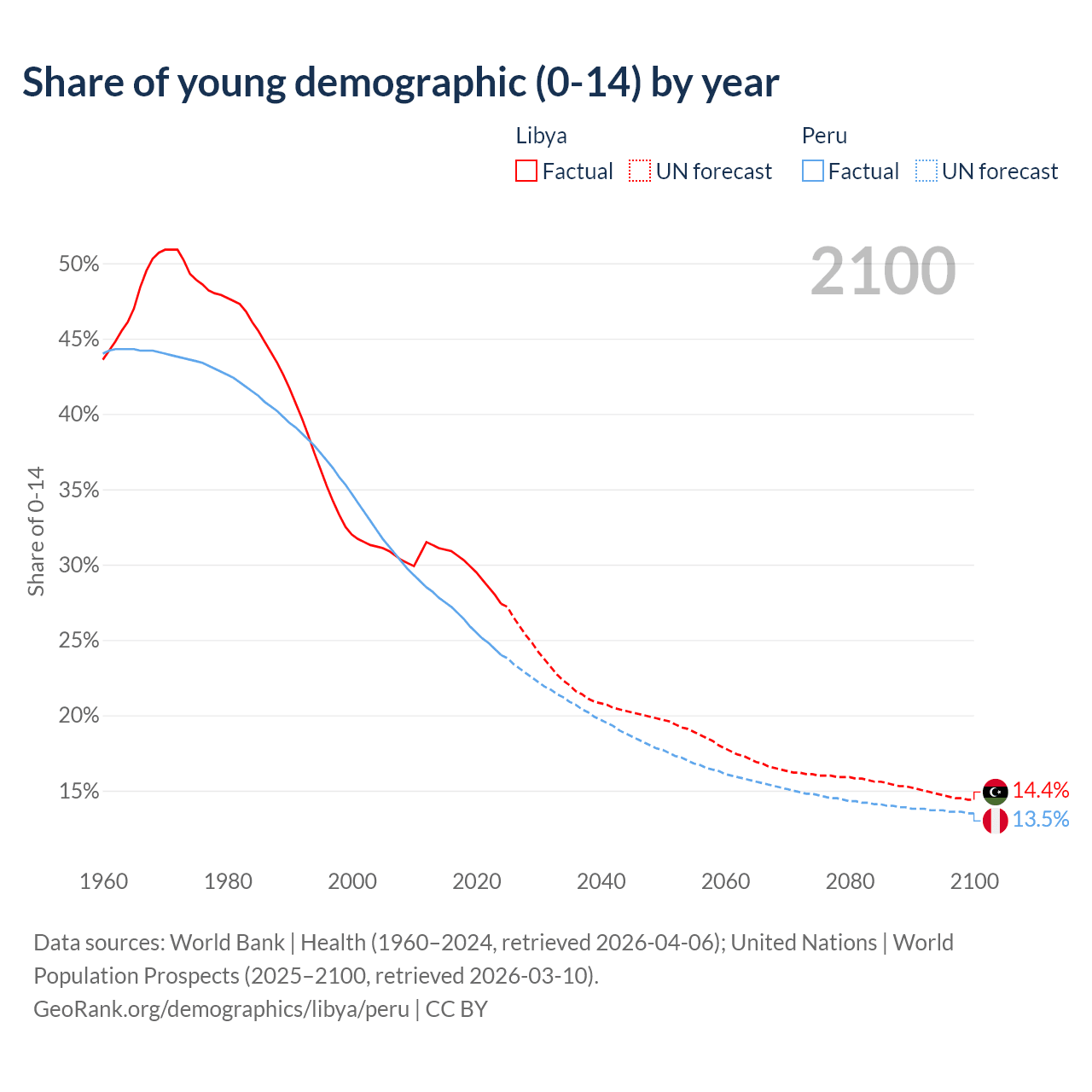 - The share of young demographic (0-15 years old) in Libya is 27.4% vs 24% in Peru.
