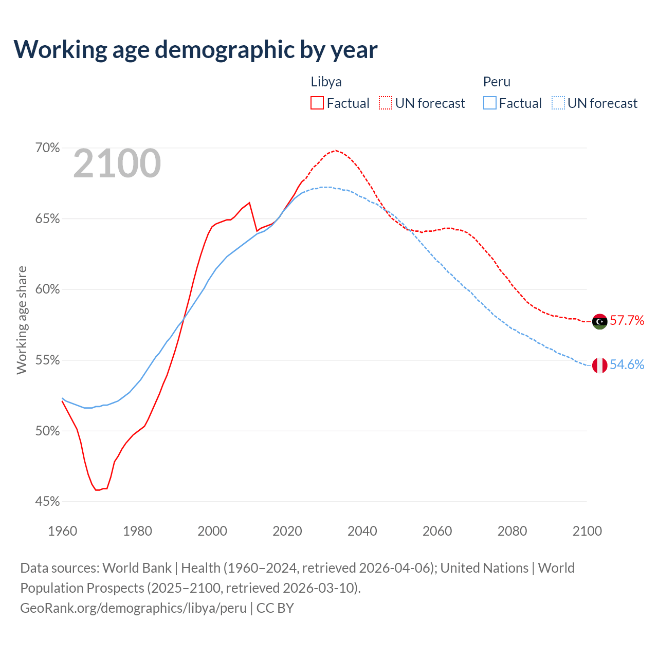 - Libya has 5.11M working age adults (aged 15-64) vs 23.4M in Peru.