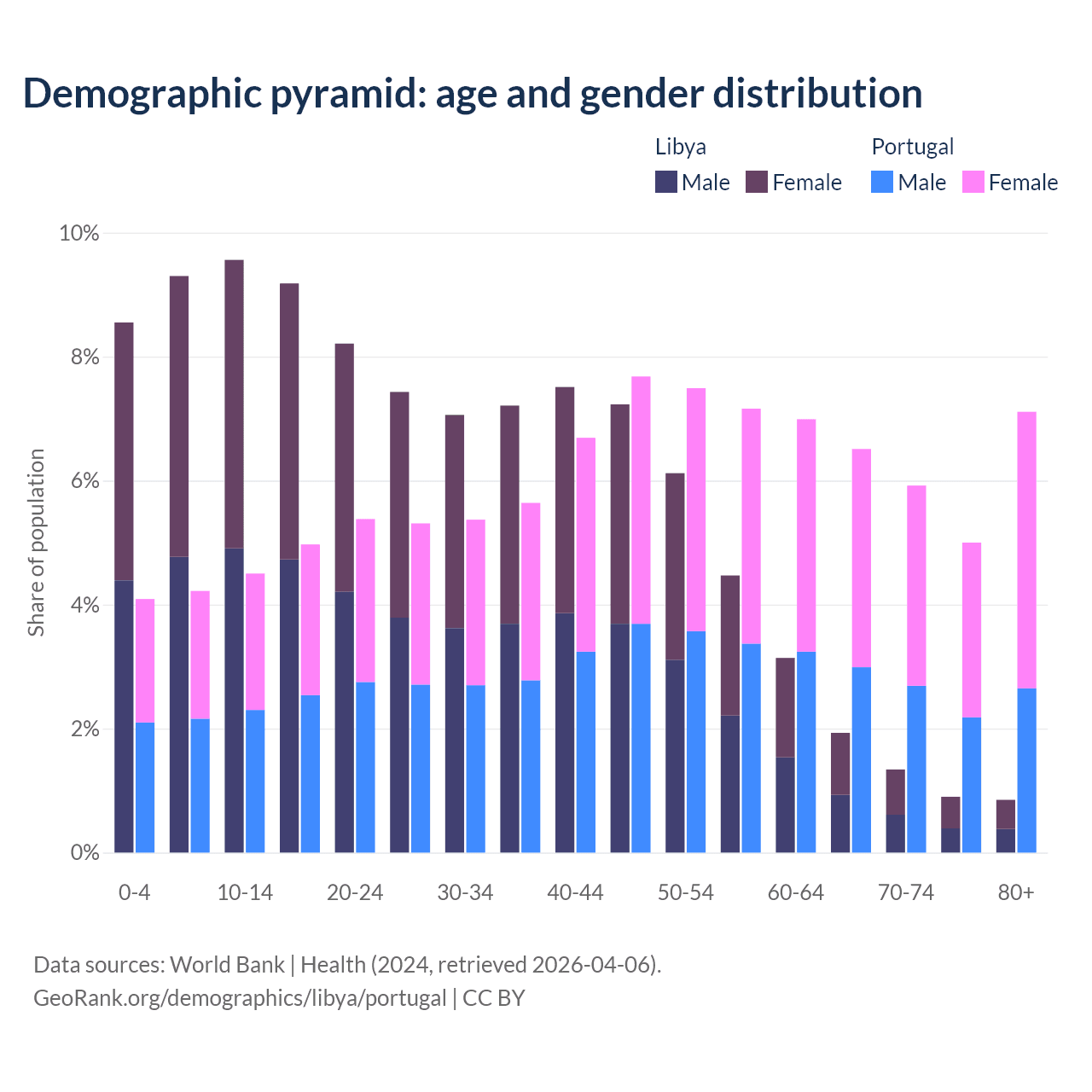 Demographics of Libya compared to Portugal: