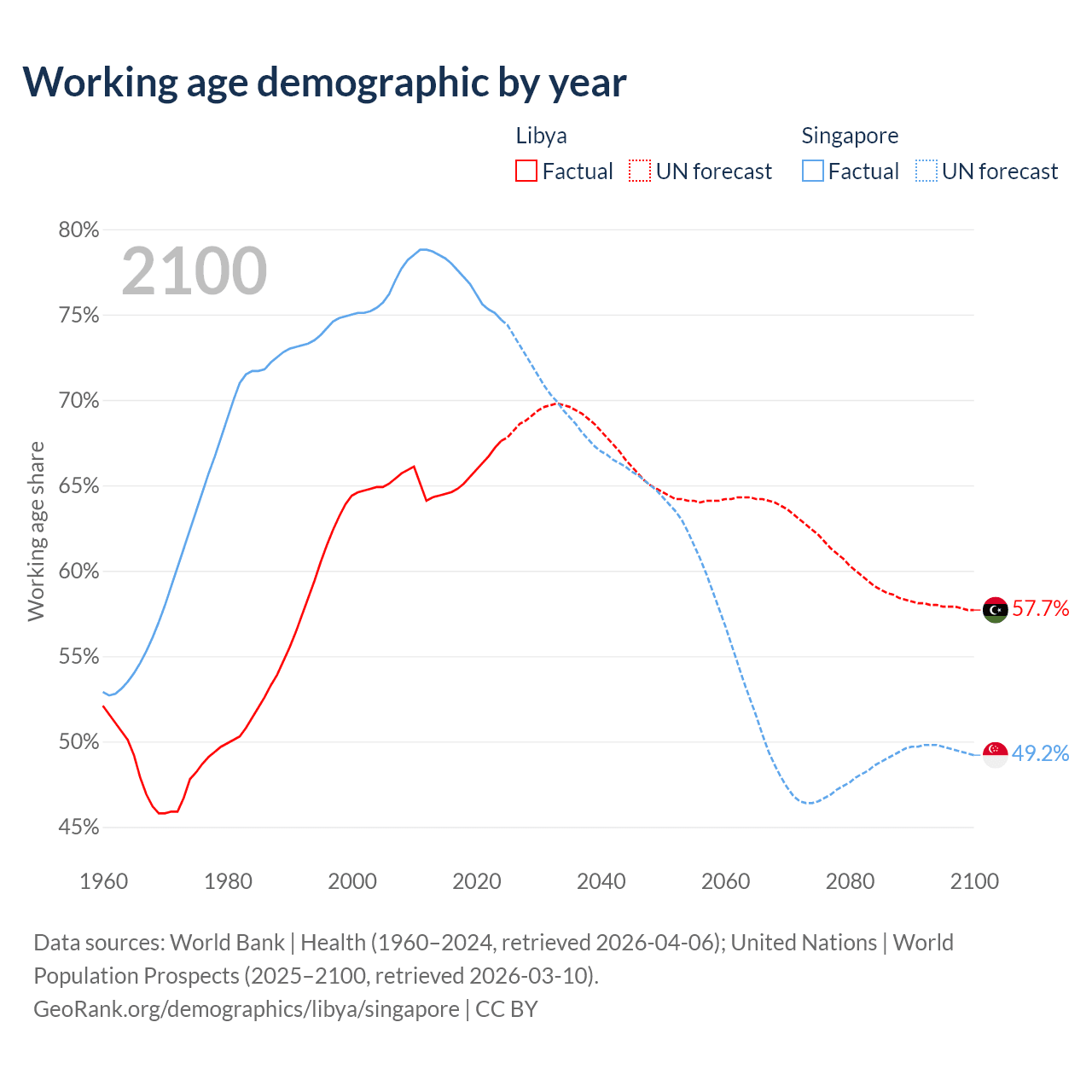 - Libya has 5.11M working age adults (aged 15-64) vs 4.57M in Singapore.
