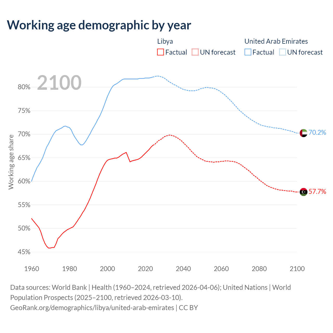 - Libya has 5.11M working age adults (aged 15-64) vs 9.6M in the United Arab Emirates.