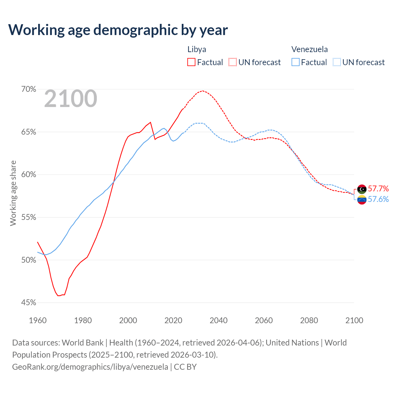 - Libya has 5.11M working age adults (aged 15-64) vs 18.6M in Venezuela.