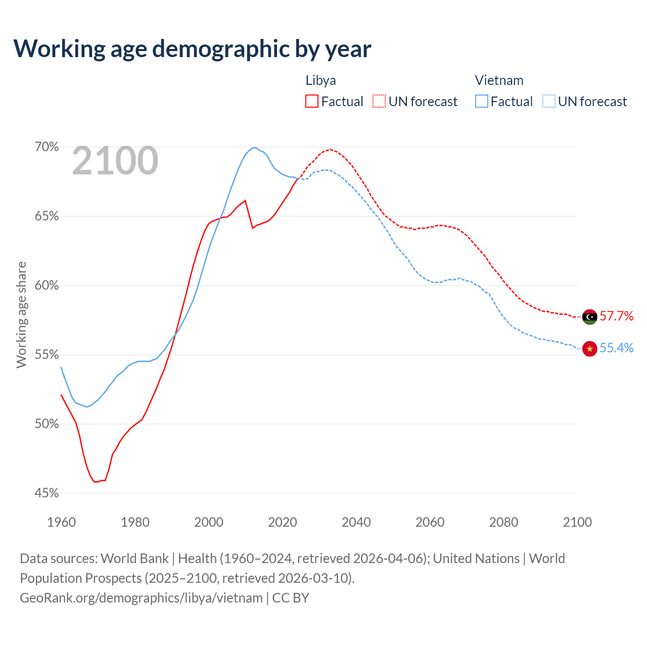- Libya has 5.11M working age adults (aged 15-64) vs 69.3M in Vietnam.