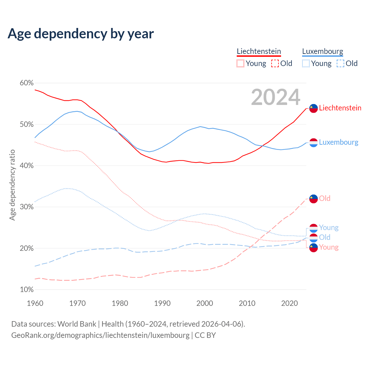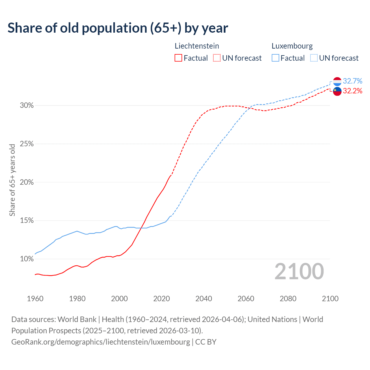 - The share of old-age demographic (65+) in Liechtenstein is 20.7% vs 15.5% in Luxembourg.