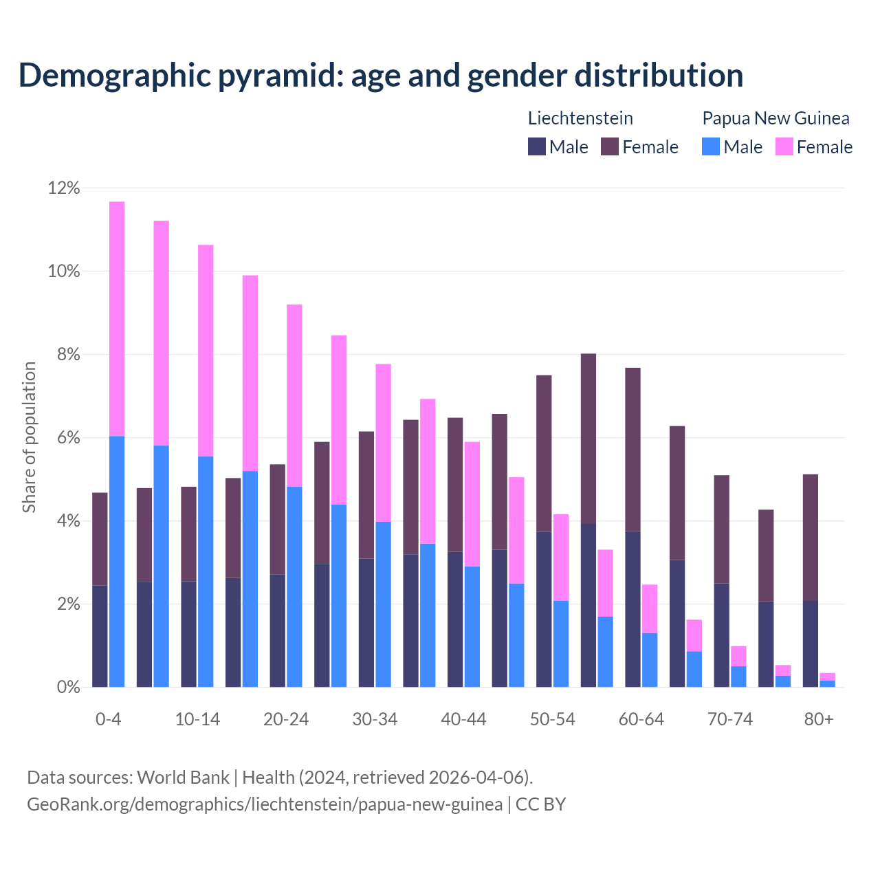 Demographics of Liechtenstein compared to Papua New Guinea: