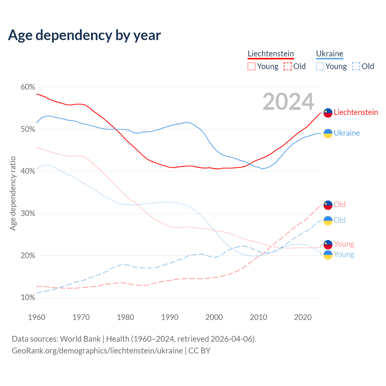 - The share of old-age demographic (65+) in Liechtenstein is 20.7% vs 19% in Ukraine.