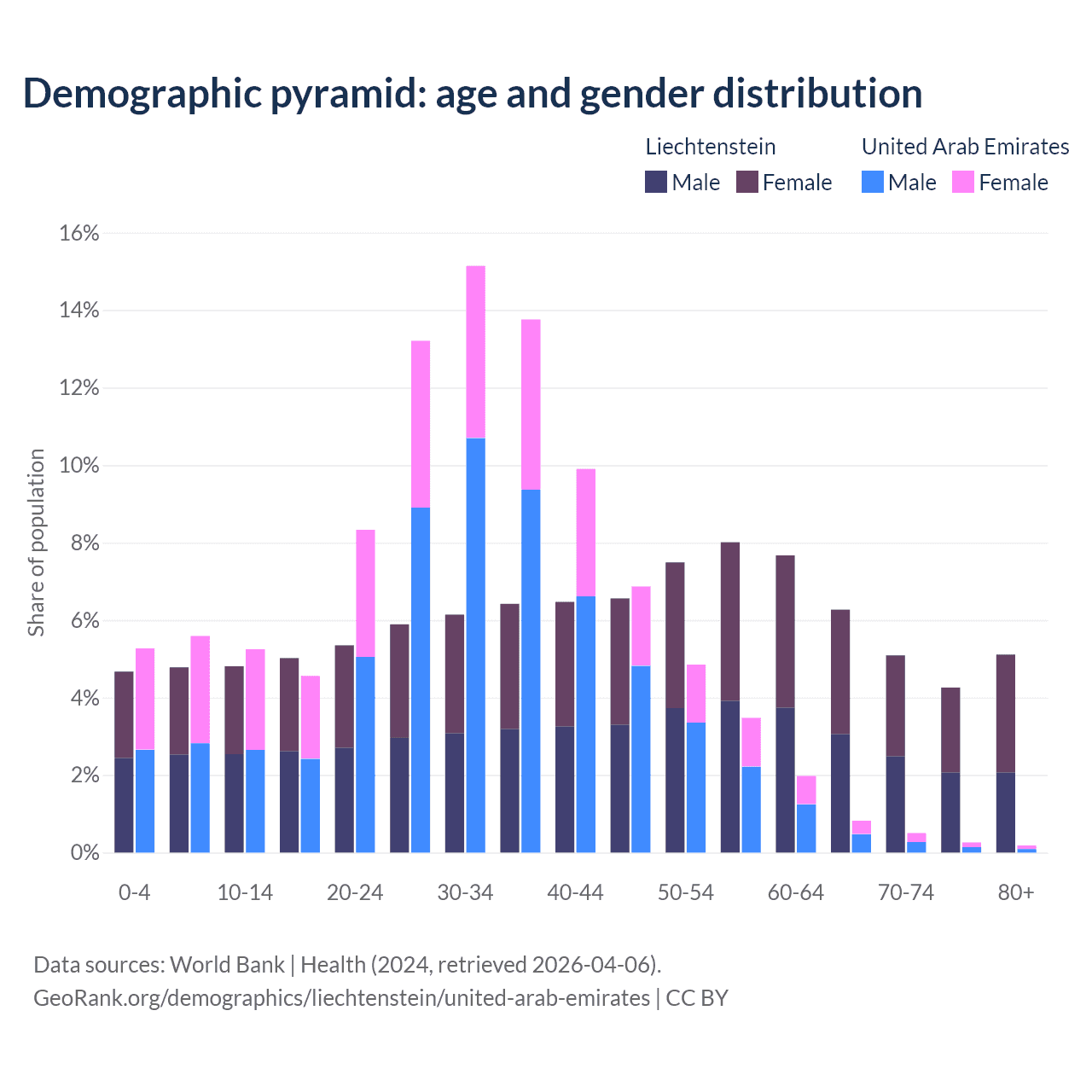 Demographics of Liechtenstein compared to the United Arab Emirates: