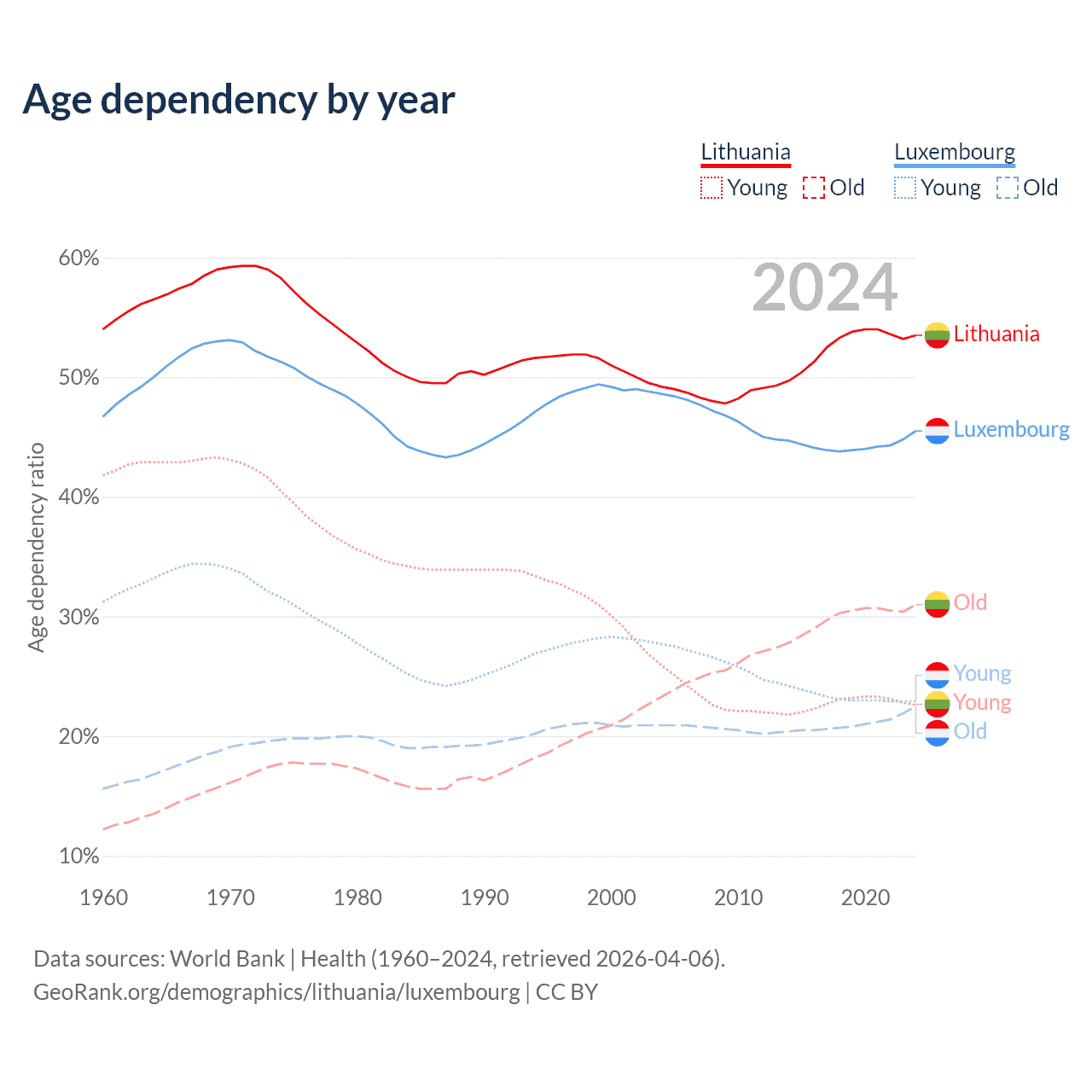 - The share of old-age demographic (65+) in Lithuania is 20.2% vs 15.5% in Luxembourg.