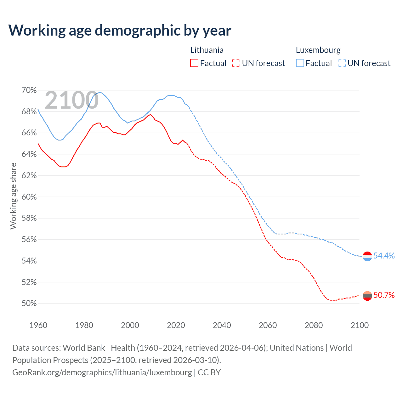 - Lithuania has 1.84M working age adults (aged 15-64) vs 477K in Luxembourg.