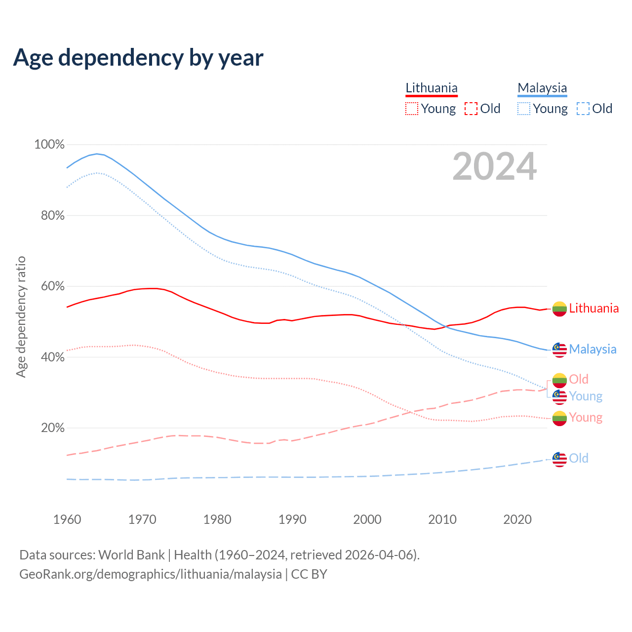 - Lithuania is ranked 28/196 by median age (oldest to youngest) vs 92/196 for Malaysia.