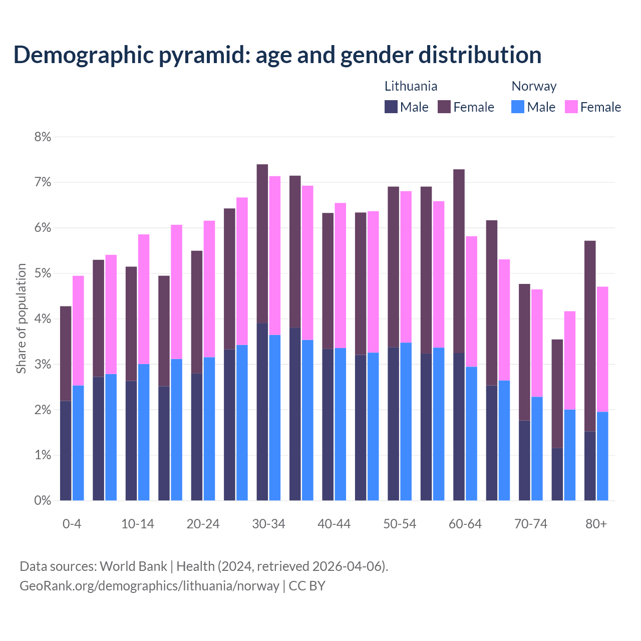 Demographics of Lithuania compared to Norway: