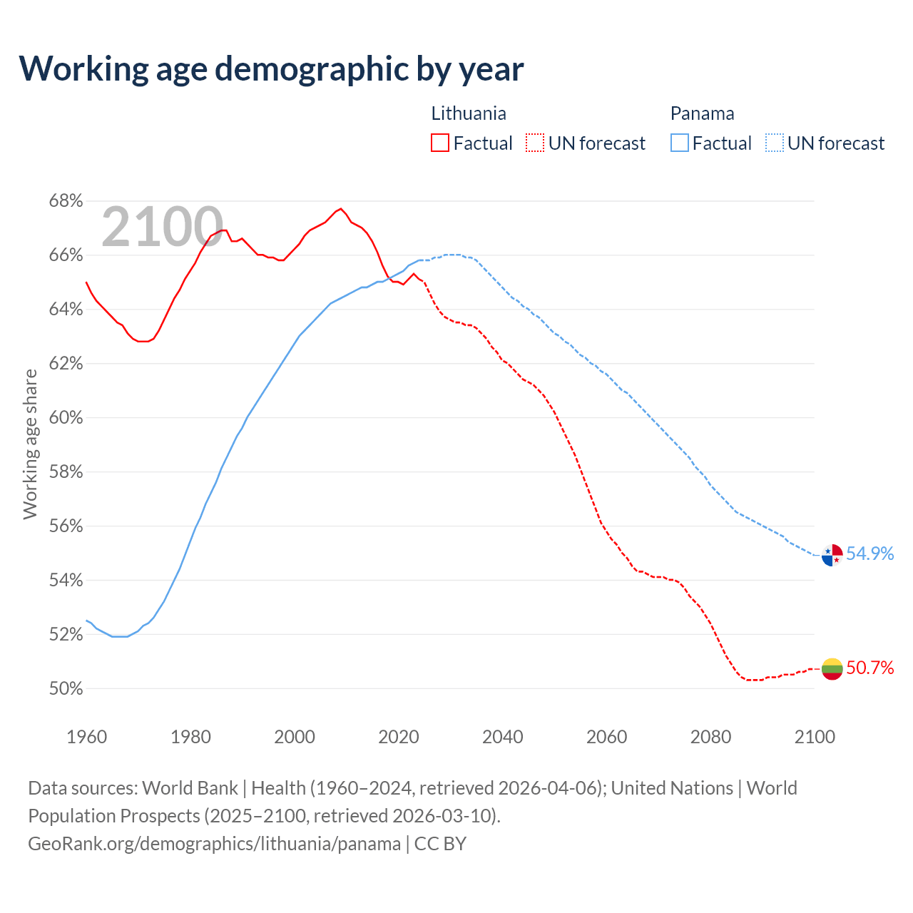 - Lithuania has 1.84M working age adults (aged 15-64) vs 3.05M in Panama.
