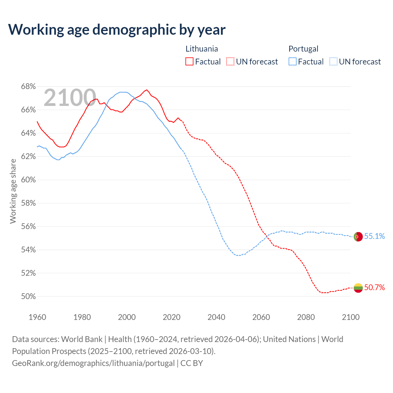 - Lithuania has 1.84M working age adults (aged 15-64) vs 6.68M in Portugal.