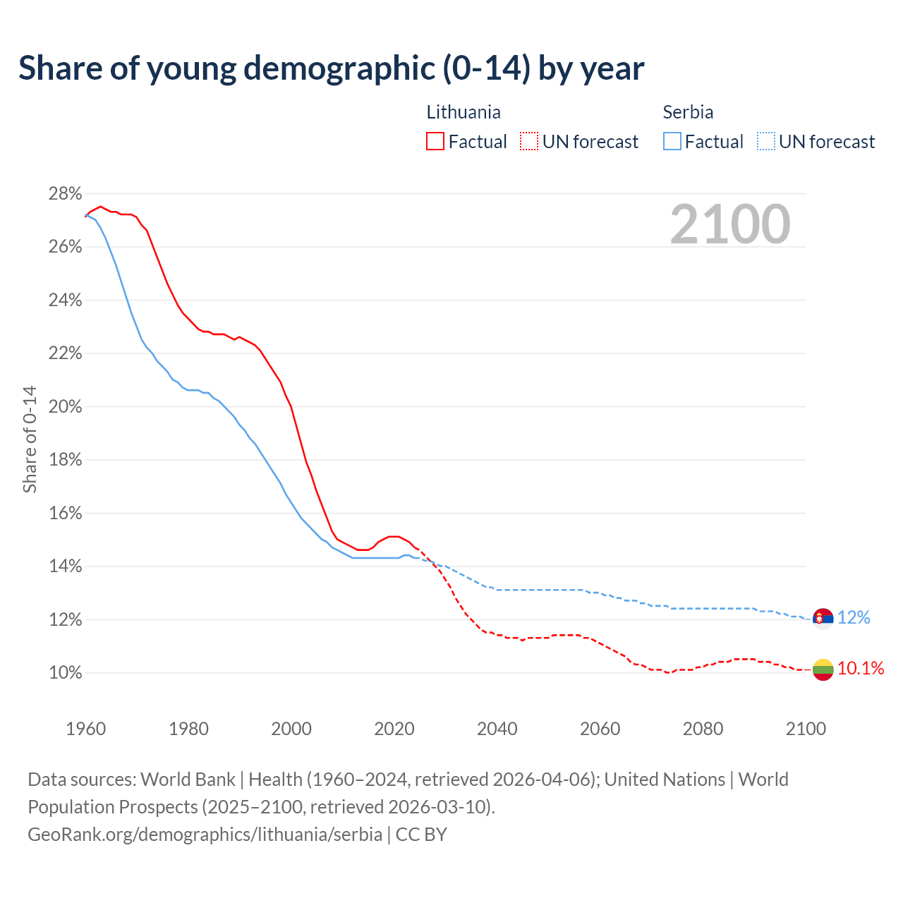 - The share of young demographic (0-15 years old) in Lithuania is 14.7% vs 14.3% in Serbia.
