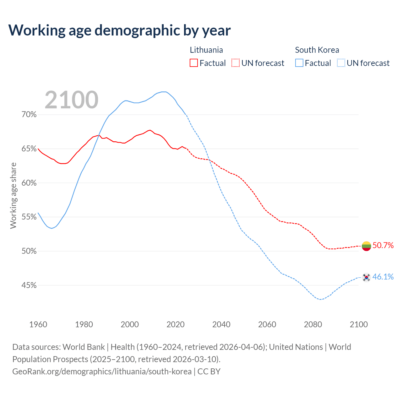 - Lithuania has 1.84M working age adults (aged 15-64) vs 36.2M in South Korea.