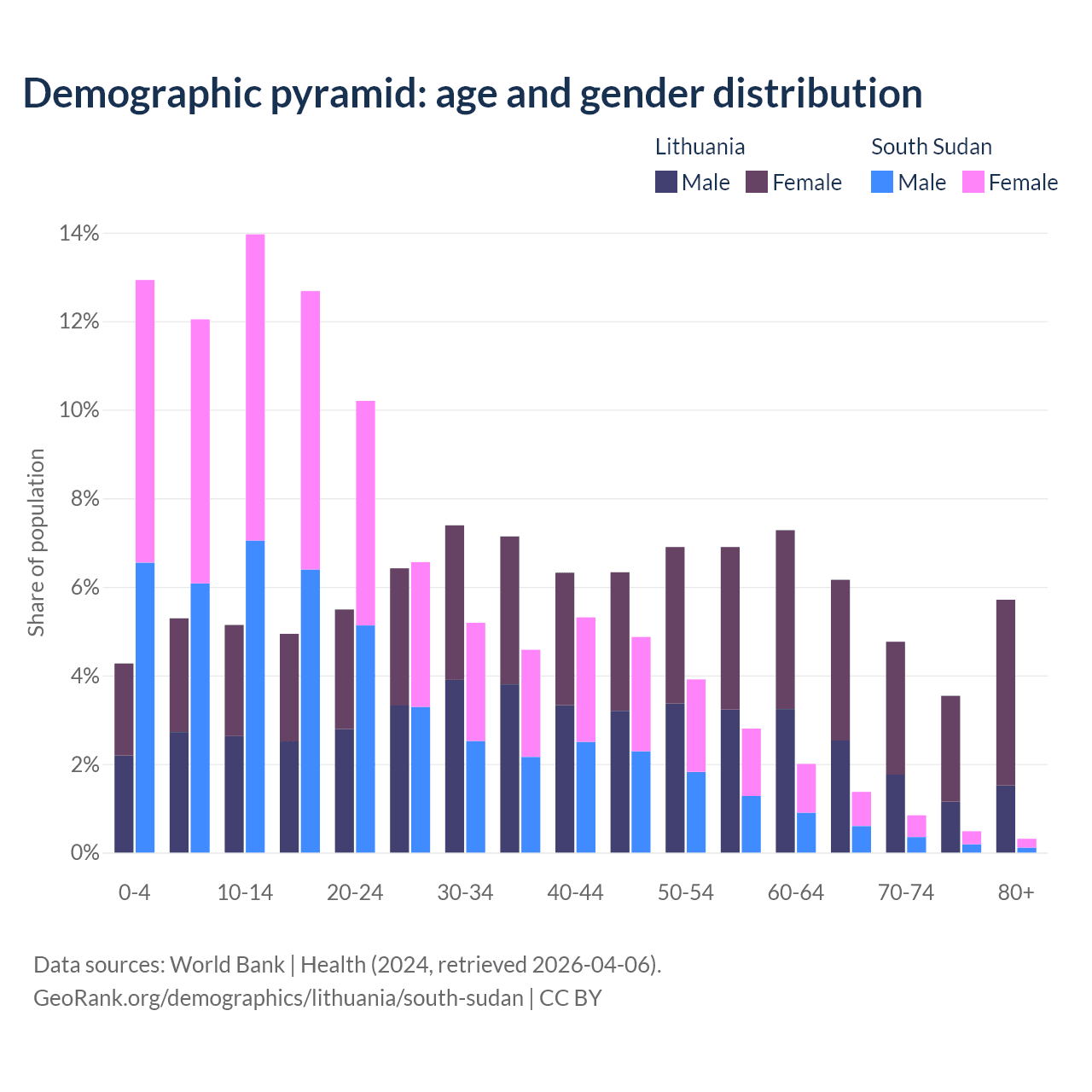 Demographics of Lithuania compared to South Sudan: