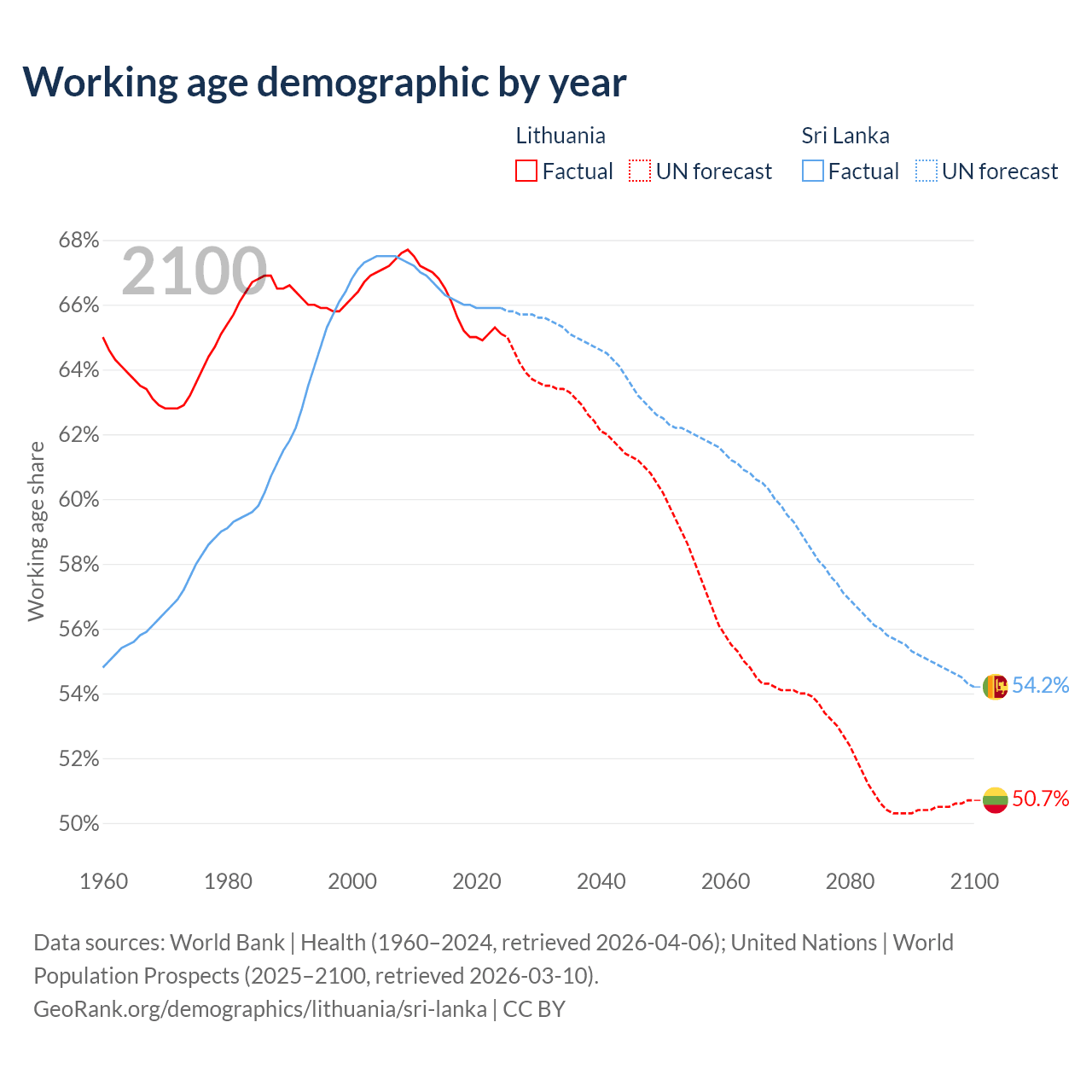 - Lithuania has 1.84M working age adults (aged 15-64) vs 14.6M in Sri Lanka.