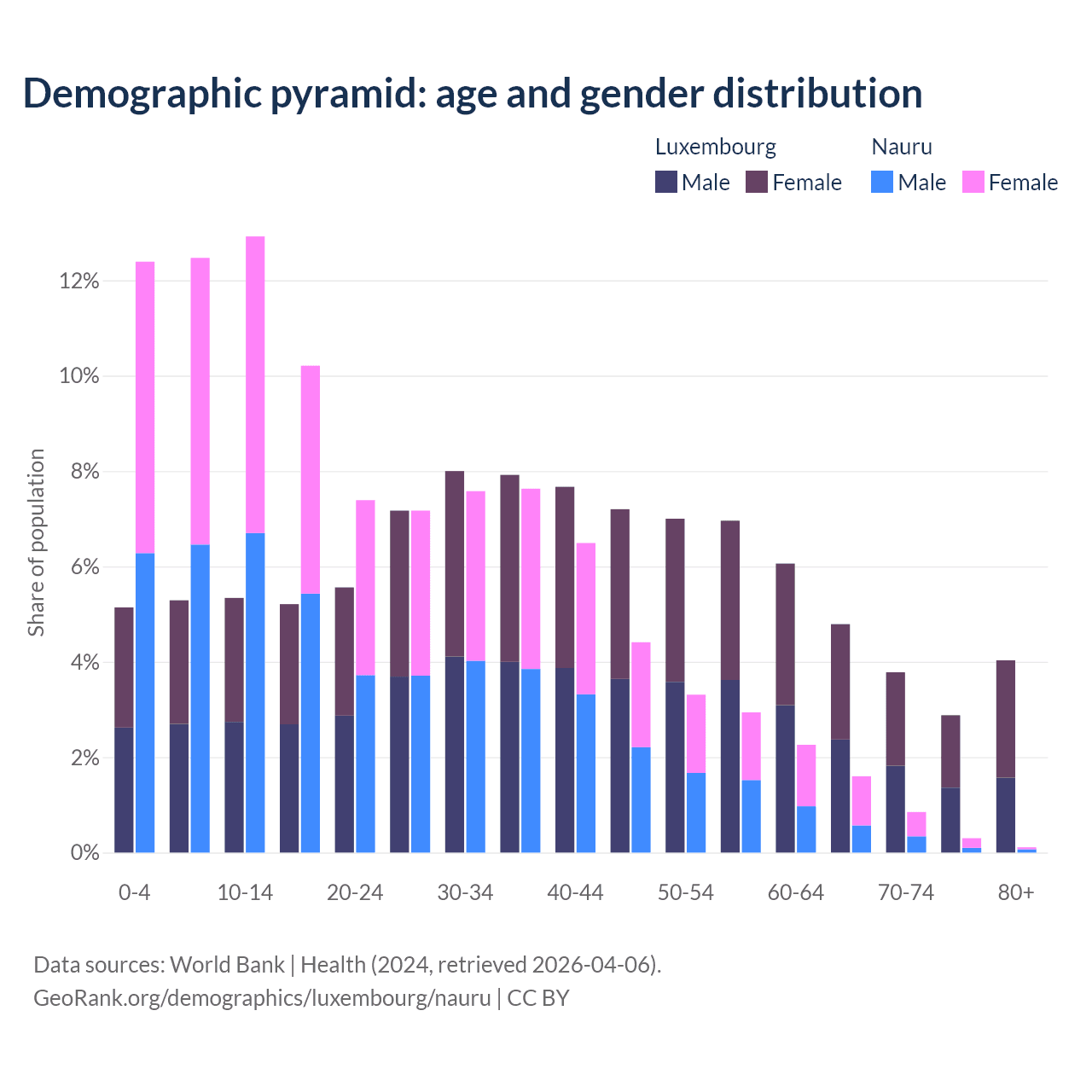 Demographics of Luxembourg compared to Nauru: