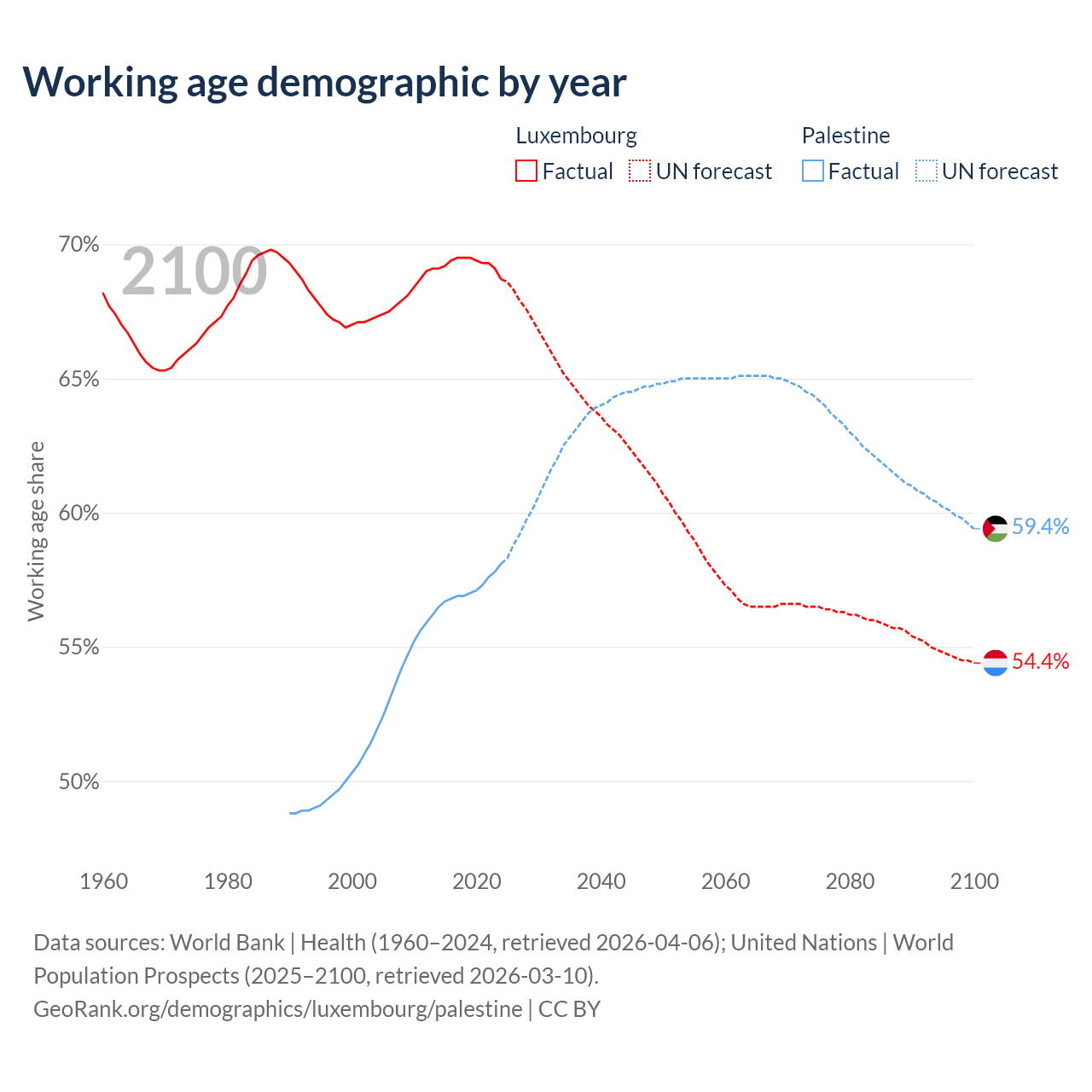 - Luxembourg has 477K working age adults (aged 15-64) vs 3.2M in Palestine.