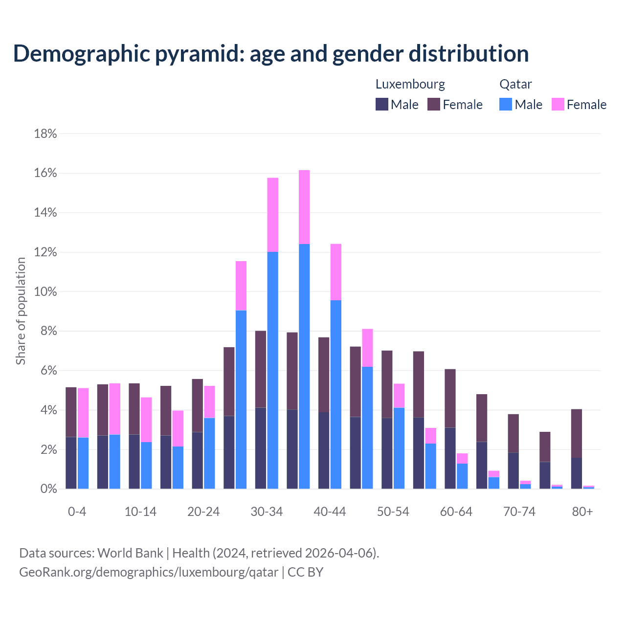 Demographics of Luxembourg compared to Qatar: