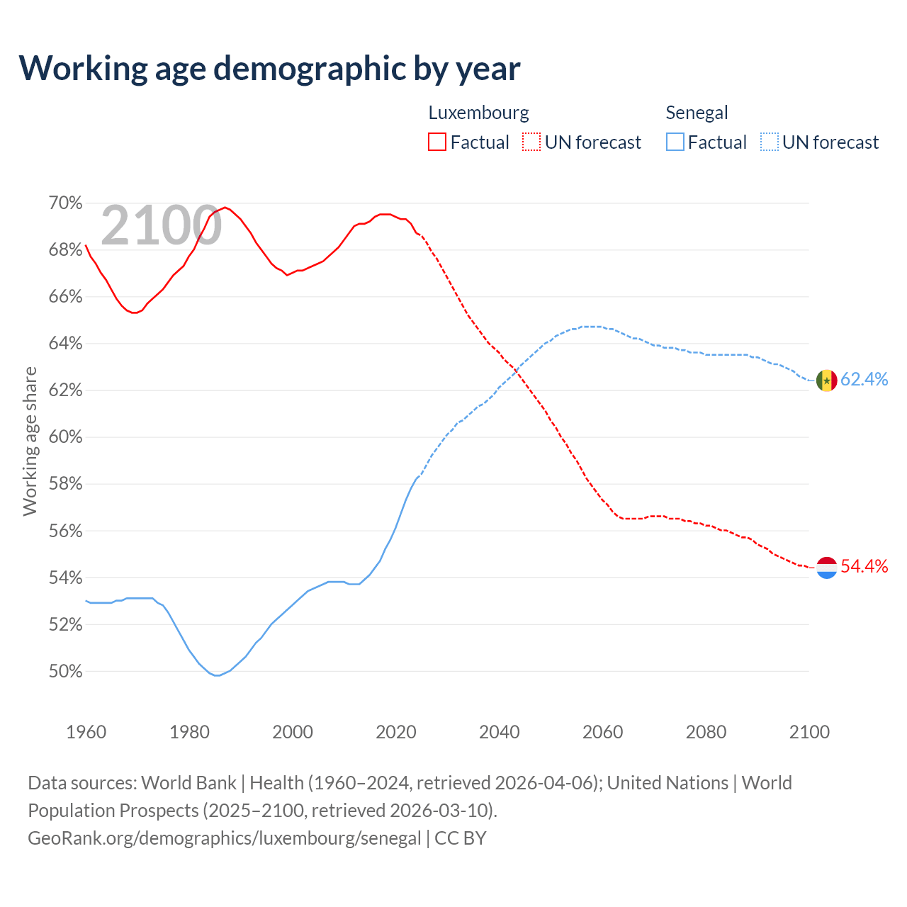 - Luxembourg has 477K working age adults (aged 15-64) vs 11.3M in Senegal.