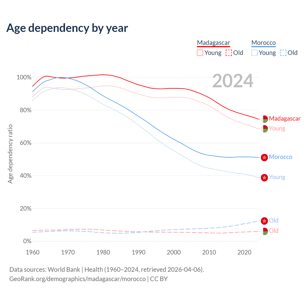 - The total fertility rate is 3.97 in Madagascar compared to 2.23 in Morocco.