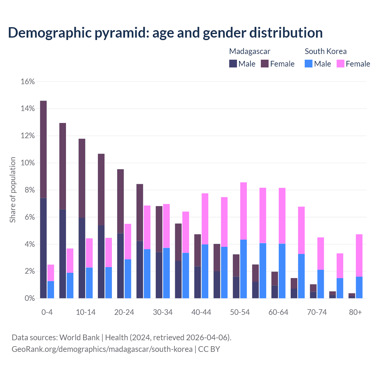Demographics of Madagascar compared to South Korea: