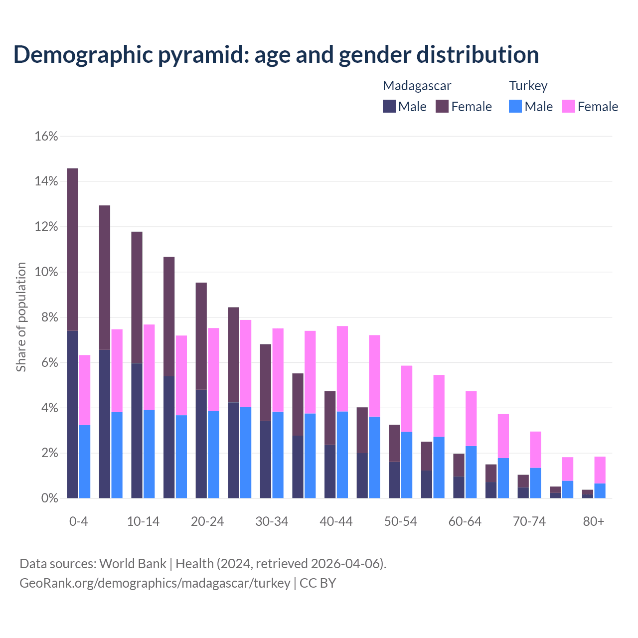 Demographics of Madagascar compared to Turkey: