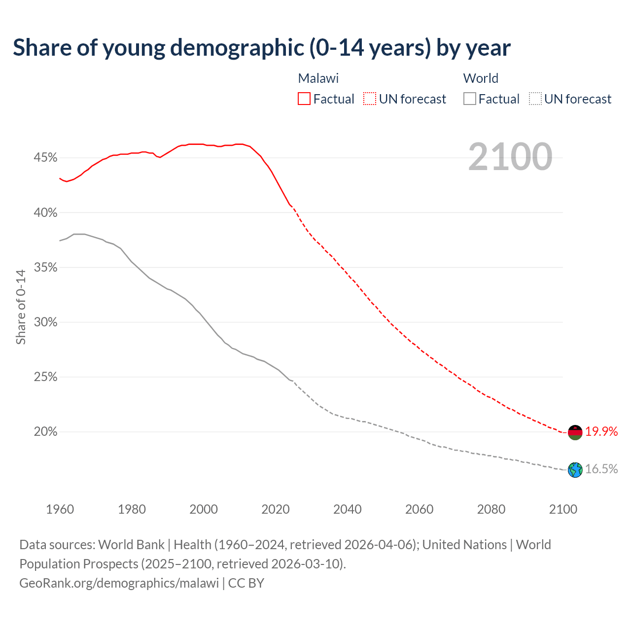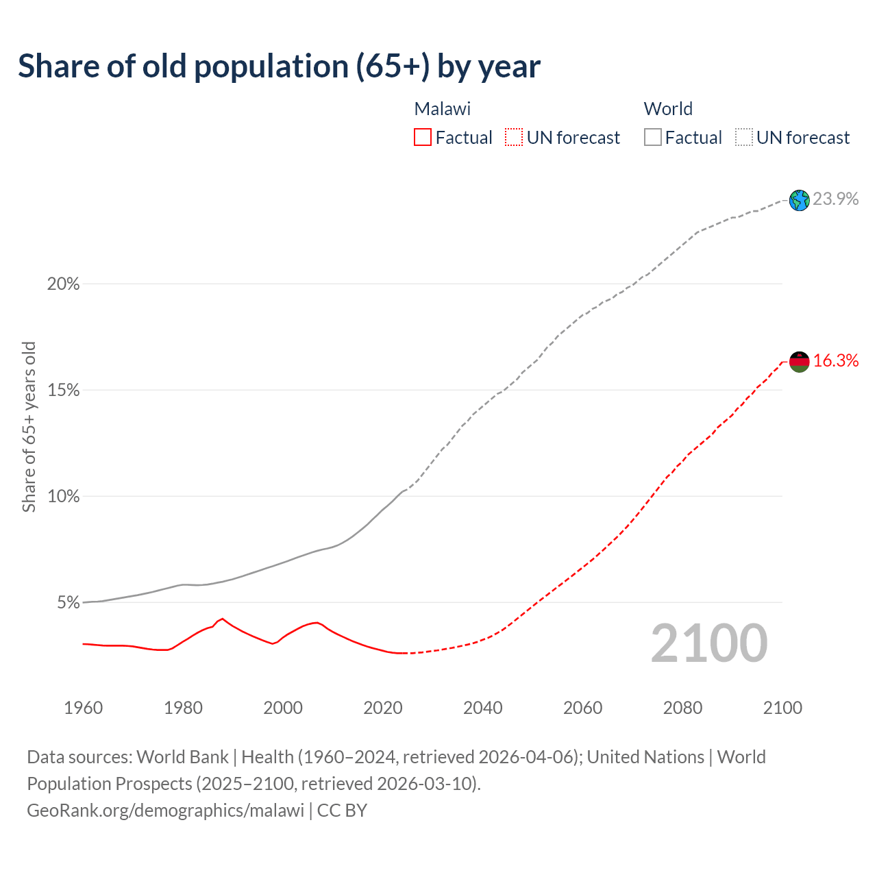 Median age in Malawi, 1960–2100