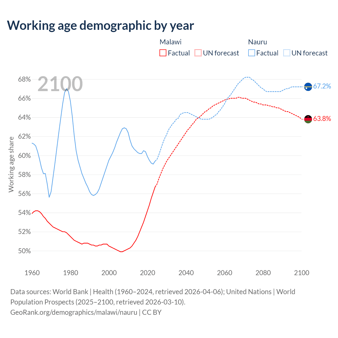 - Malawi has 13M working age adults (aged 15-64) vs 7.2K in Nauru.